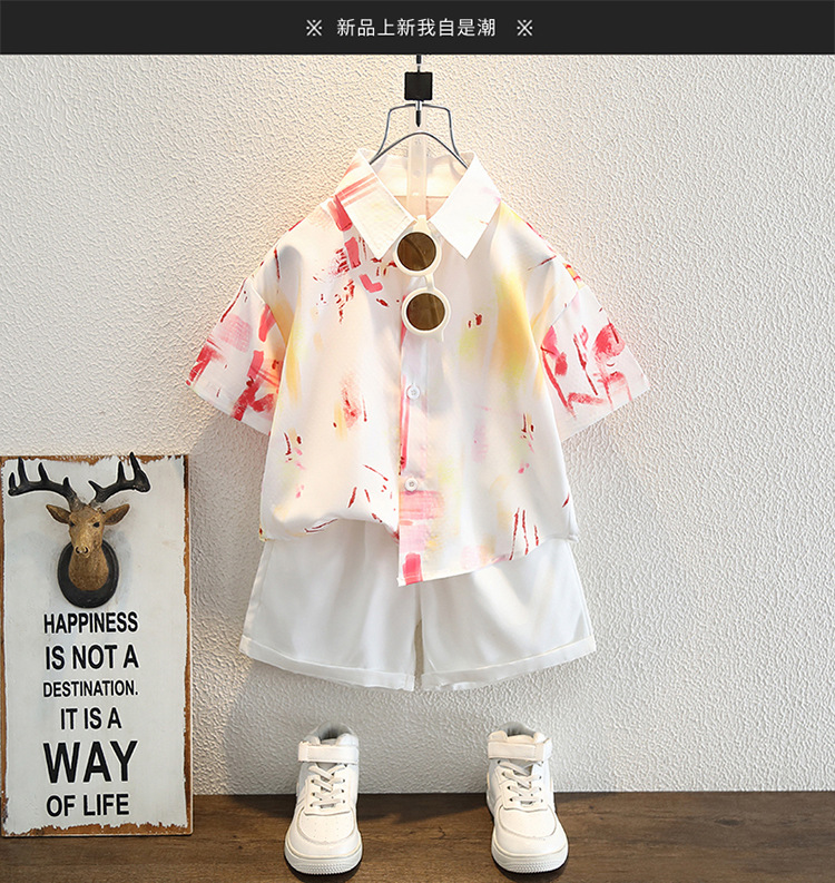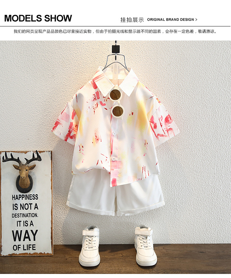 7831 Ropa para niños Camisa de manga corta para niños Traje fino de verano Camisa de moda para bebés Pantalones blancos de manga corta Traje de dos piezas