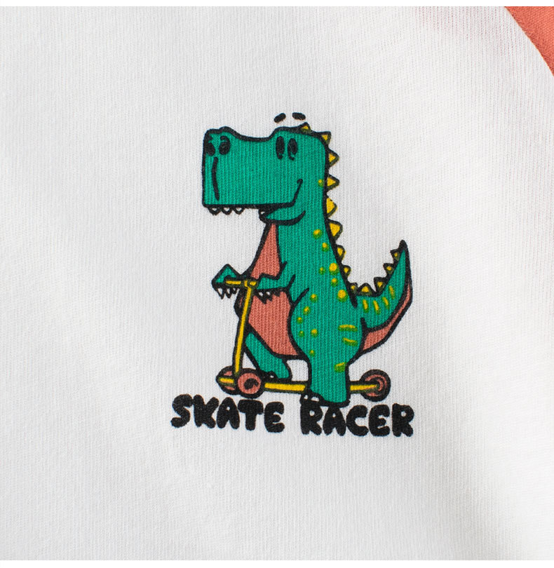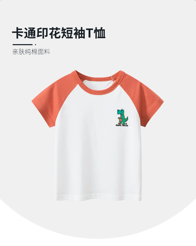 27kids camiseta de manga corta para niños coreanos al por mayor 2025 verano camisa de fondo para niños ropa de bebé para hombres dinosaurio