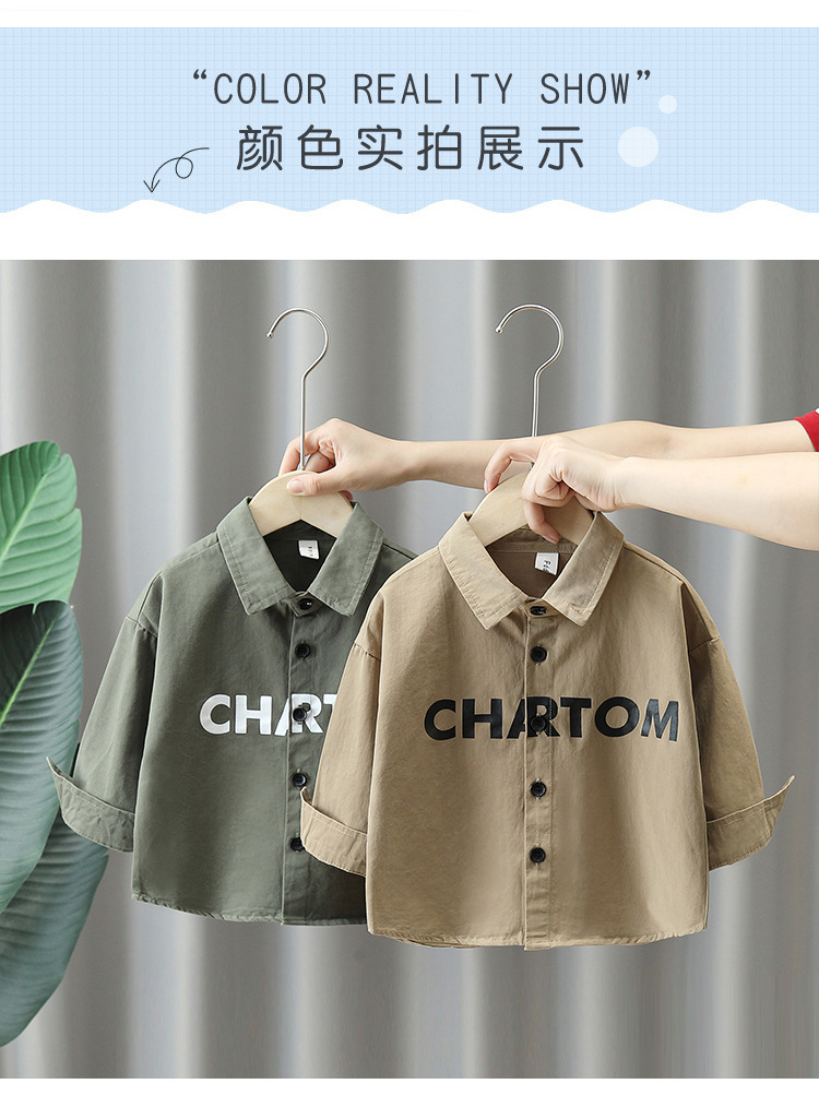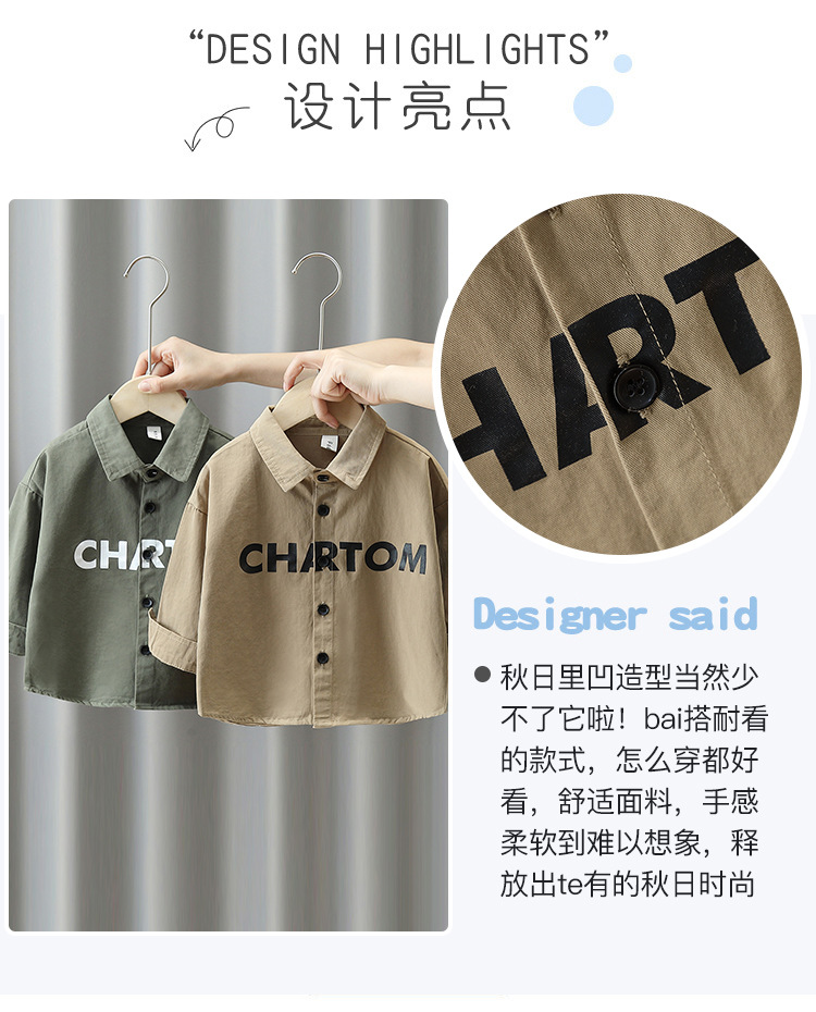 7824 chaqueta de camisa de otoño para niños 2025 nueva primavera y otoño ropa de marca de moda para niños pequeños y medianos camisa estampada para niños