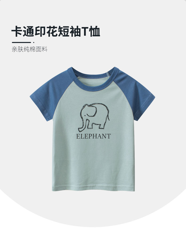 27kids ropa infantil europea y americana nuevos productos de verano para niños elefante de dibujos animados camiseta de manga corta ropa de bebé cabello de una pieza