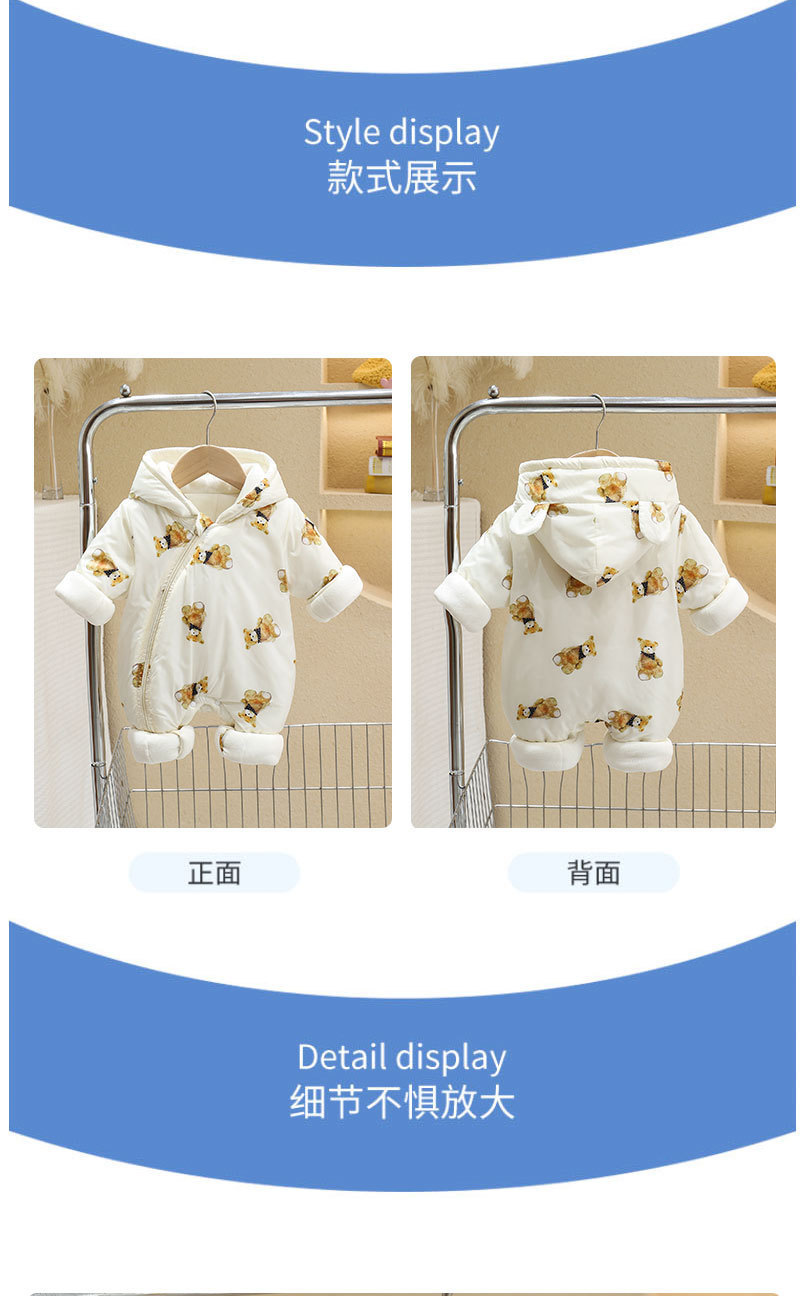 Ropa de una pieza de manga larga para recién nacidos de invierno, mameluco con capucha de dibujos animados para bebés y niñas
