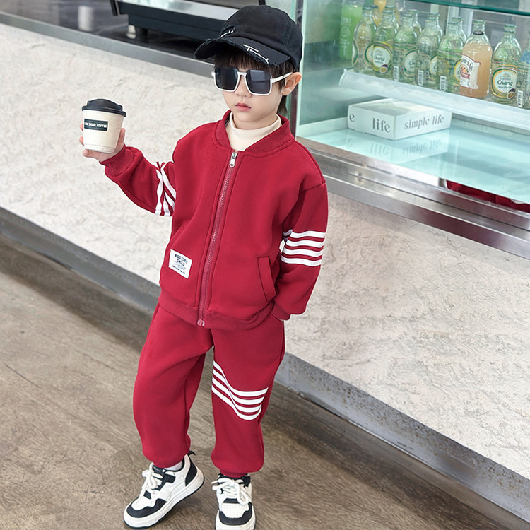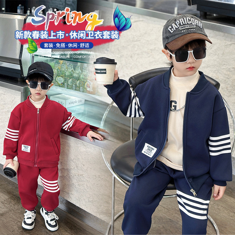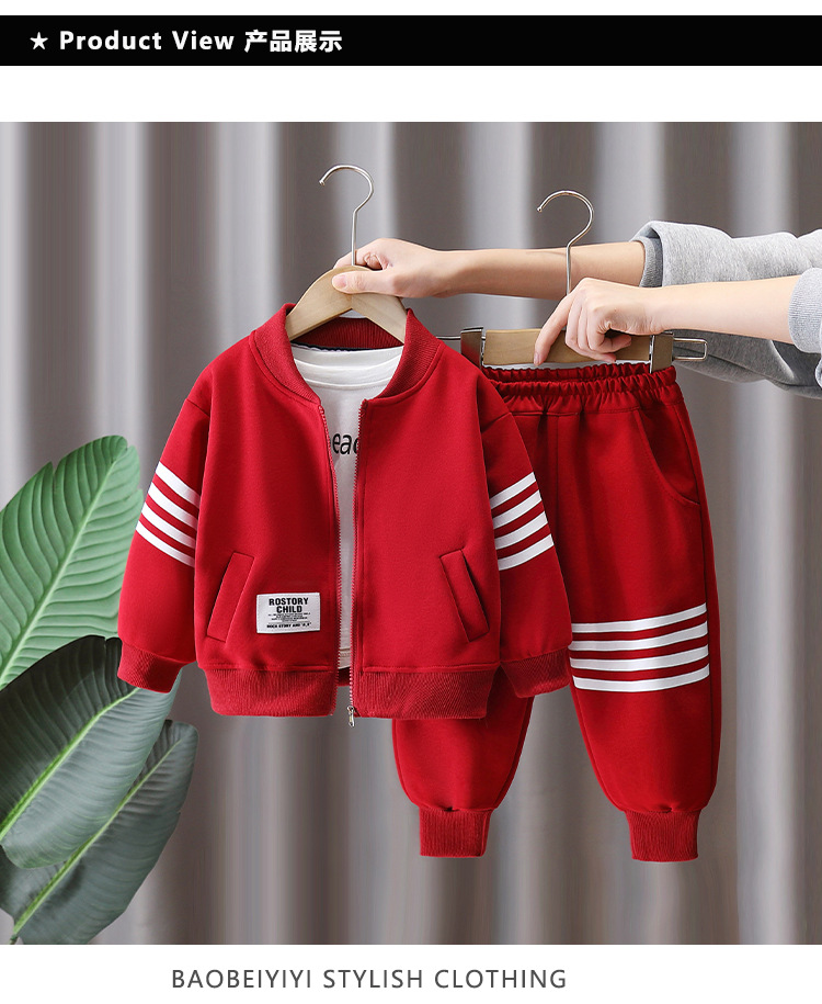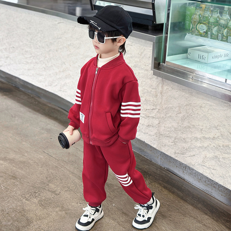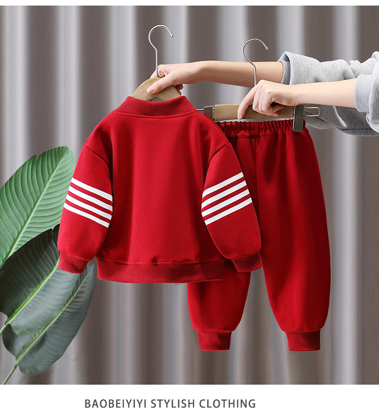7780 Traje rojo para niños Ropa deportiva de primavera y otoño Traje de dos piezas de moda de primavera para niños guapos 2025 Nueva primavera