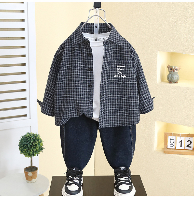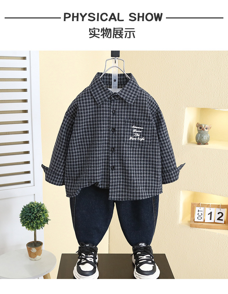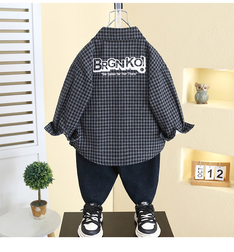 7792 Camisa a cuadros de primavera para niños 2025 Nuevo estilo de primavera y otoño para niños Camisa de manga larga de estilo occidental para niños pequeños