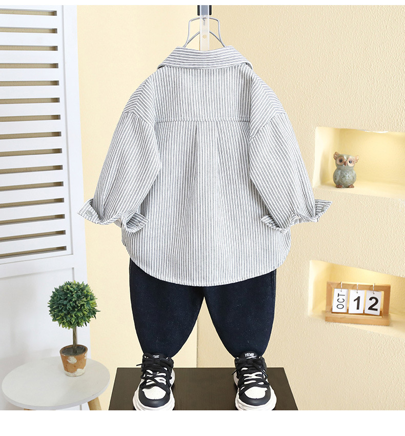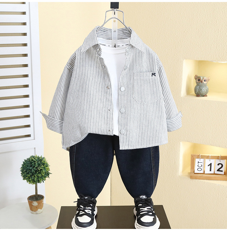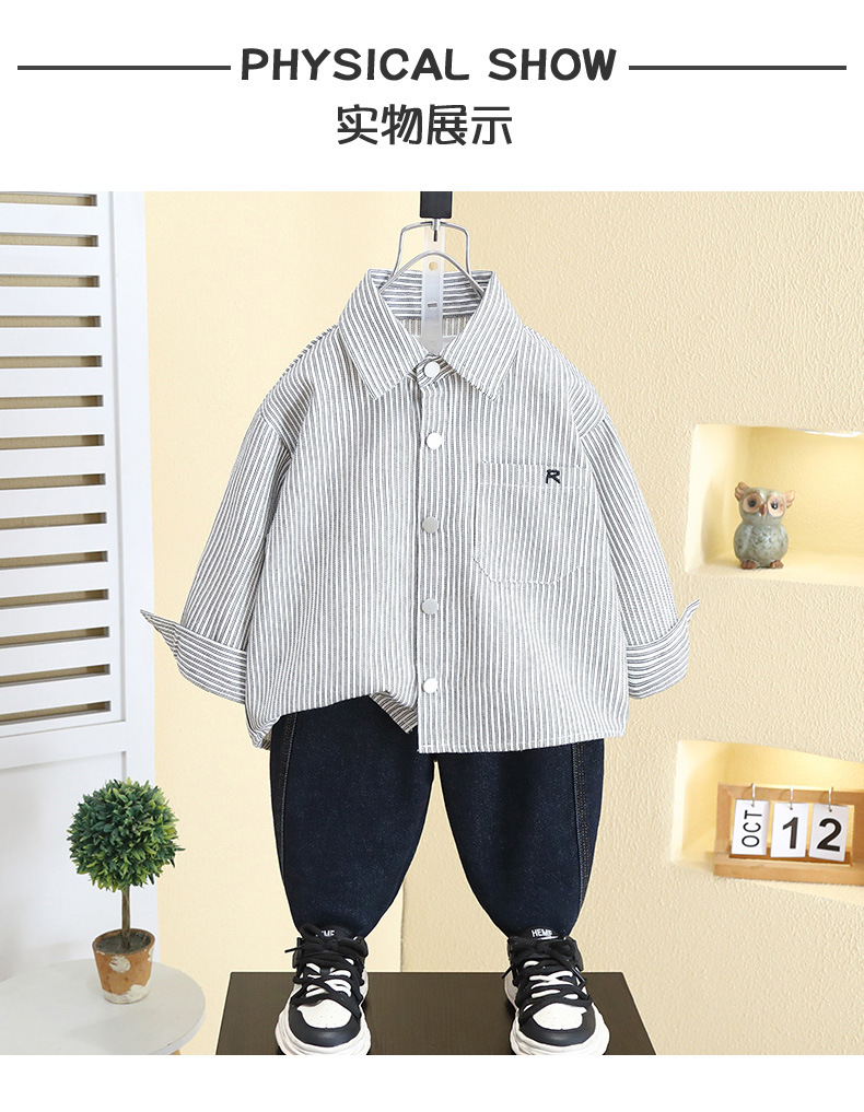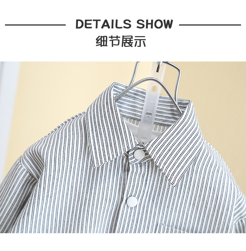 7793 Camisa de primavera para niños Camisa a rayas occidental para niños 2025 Chaqueta de manga larga de primavera para bebés para niños nuevos