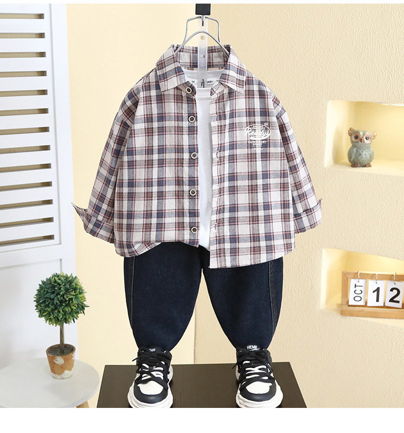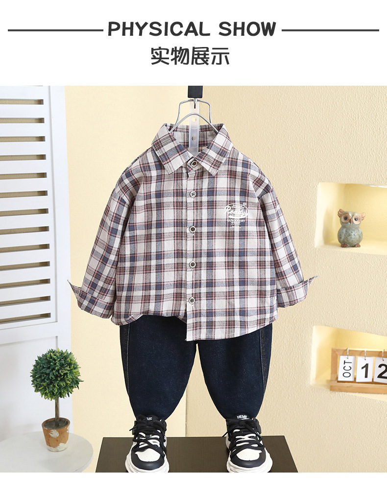 7790 chaqueta de camisa hermosa de moda para niños ropa de primavera y otoño 2025 nueva camisa a cuadros para niños top casual para bebés