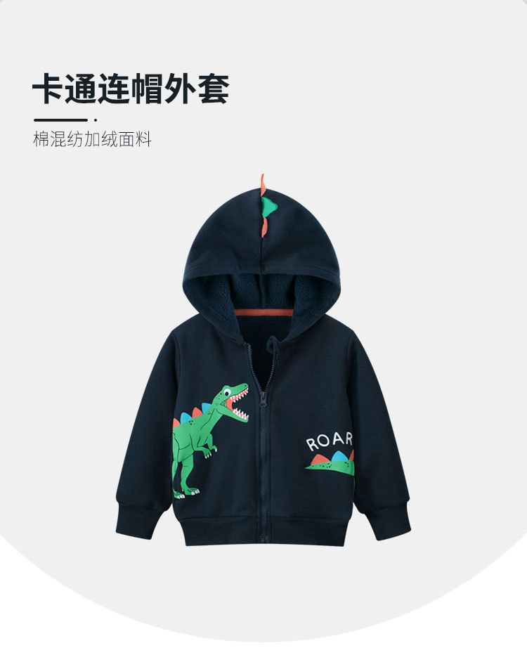 27 niños transfronterizos ropa para niños otoño e invierno abrigo para niños forro polar tejido dinosaurio cremallera Bebé Ropa para niños al por mayor