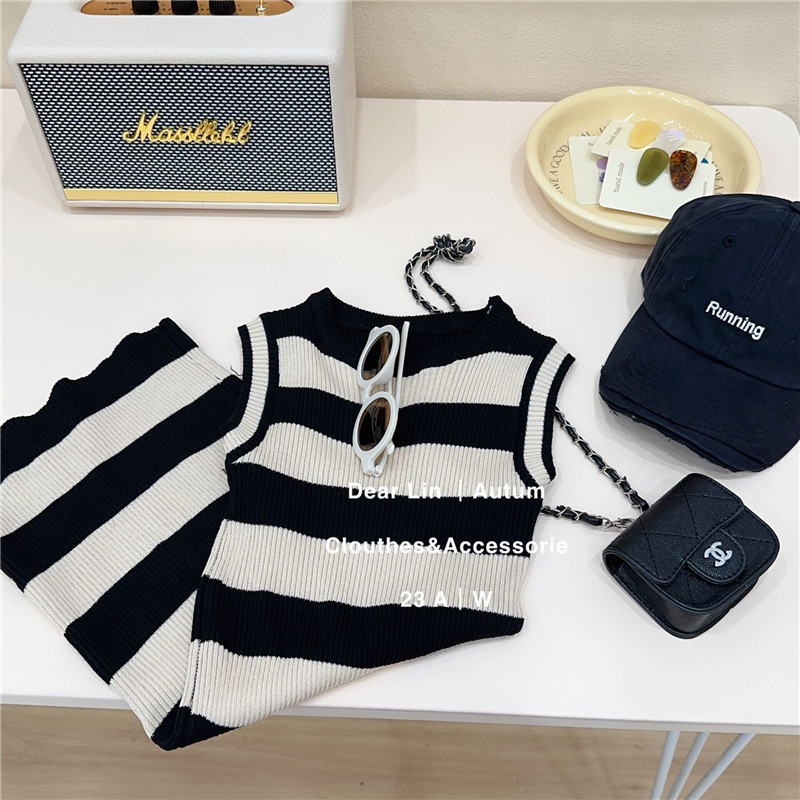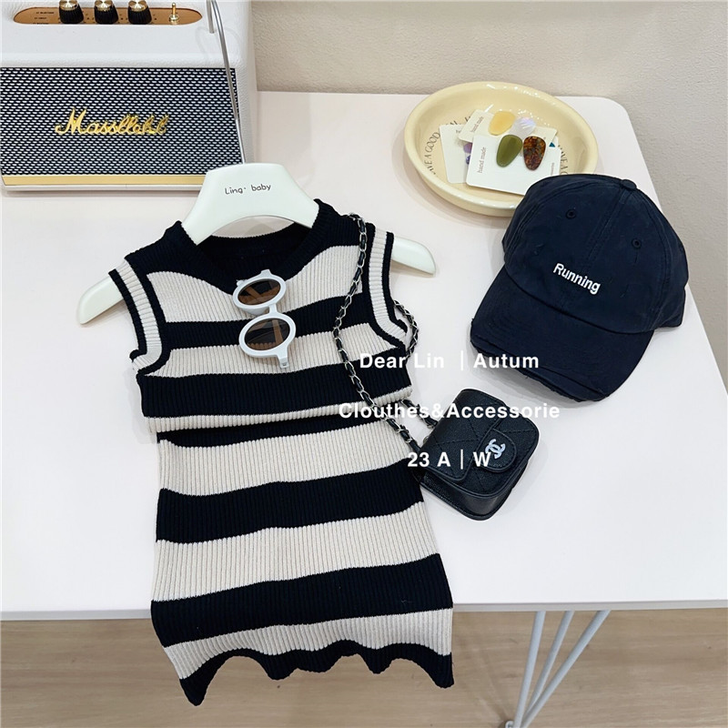 Salty Lime siete niños ropa de bebé niña vestido de los niños correa sin mangas interior de moda delgada falda de chaleco a rayas