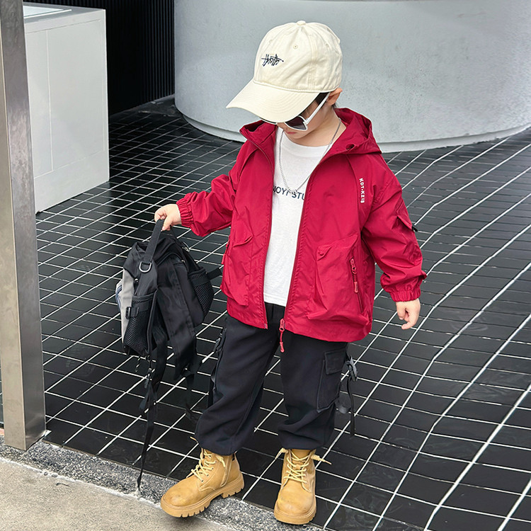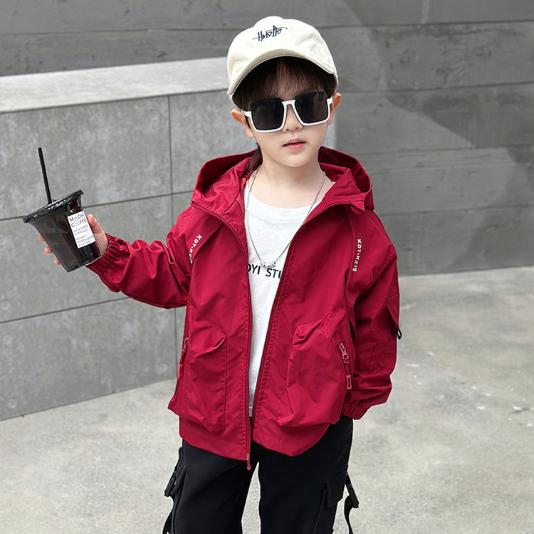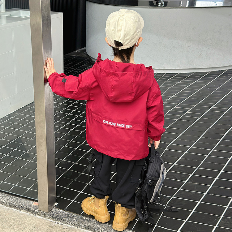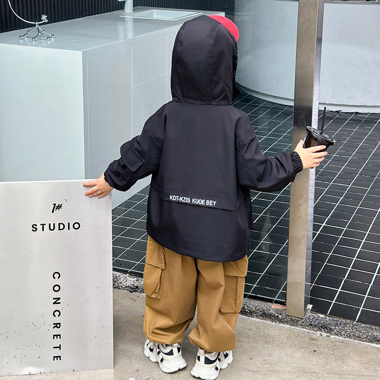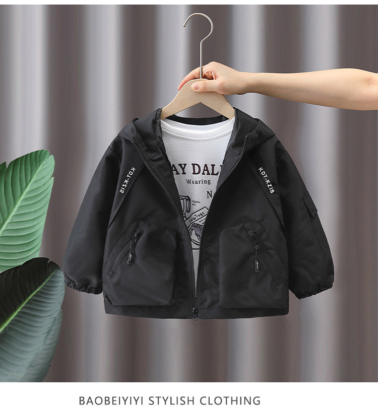 7733 gabardina negra para niños modelos de primavera y otoño 2025 nuevos niños chaqueta casual primavera moda con capucha top primavera