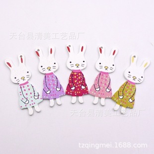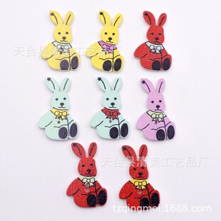 Conejo de orejas largas impreso sobre fondo blanco botón madera decoración Conejo de orejas largas 50 por paquete