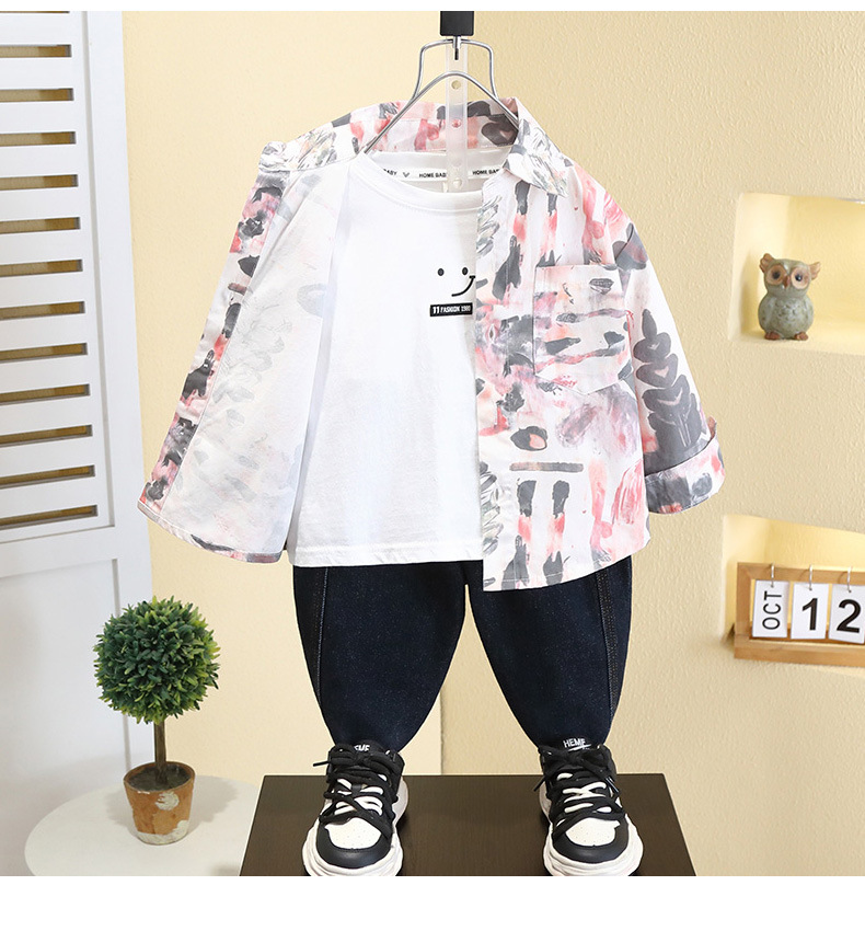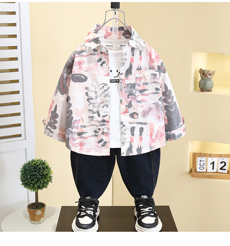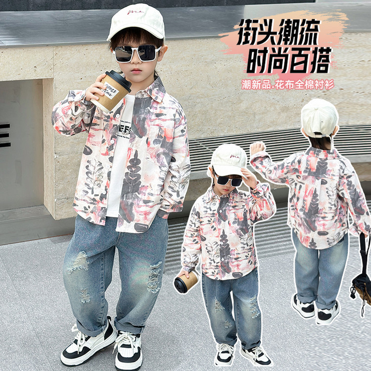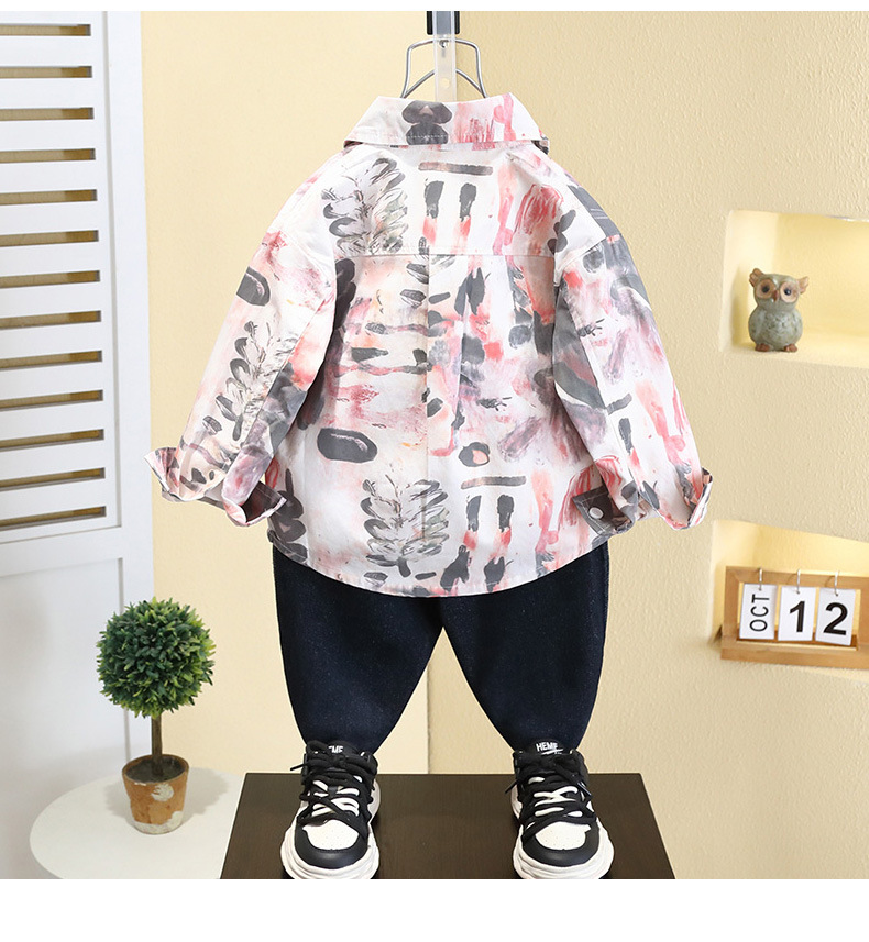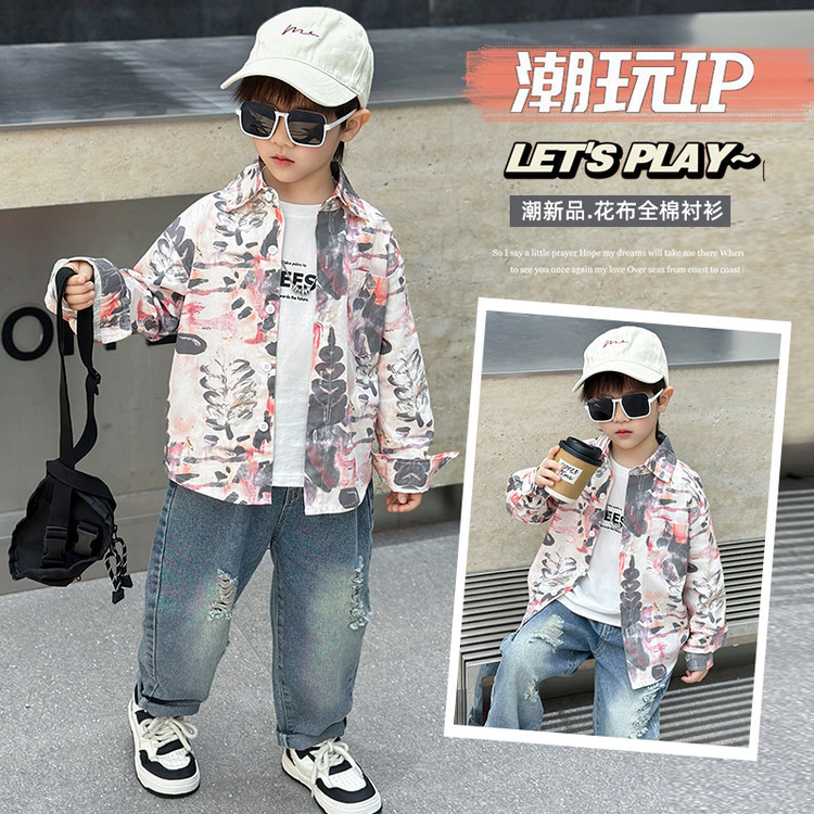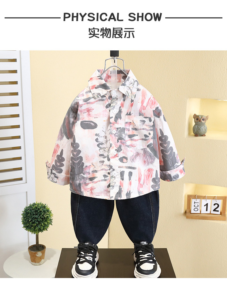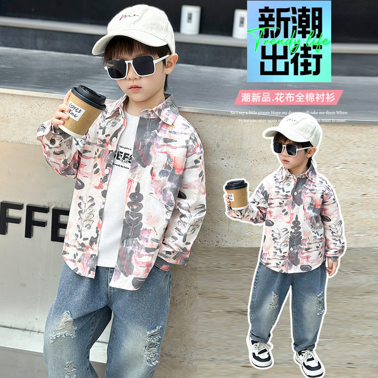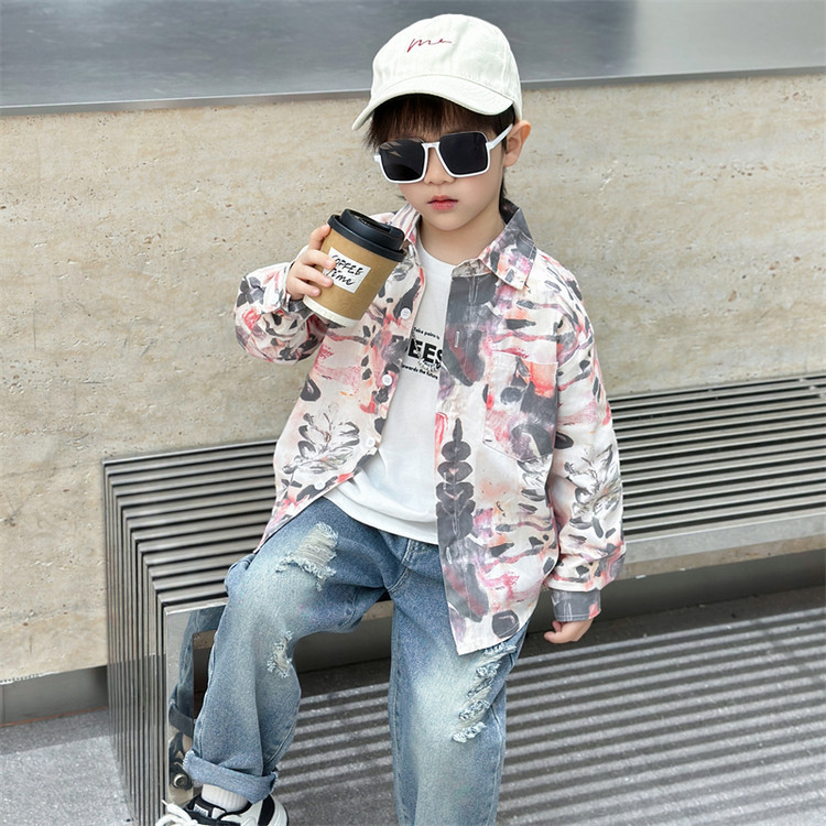 7749 Camisa estilo primavera y otoño de niños 2025 nueva camisa de flores de moda para niños ropa guapa de primavera para bebés