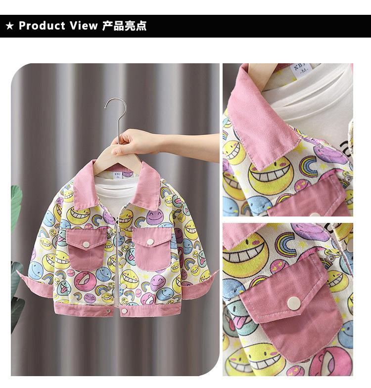 7742 chaqueta de primavera para niños 2025 nueva chaqueta sonriente para niños cool chico guapo primavera y otoño blusa callejera frita