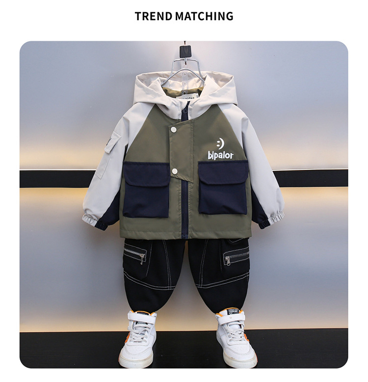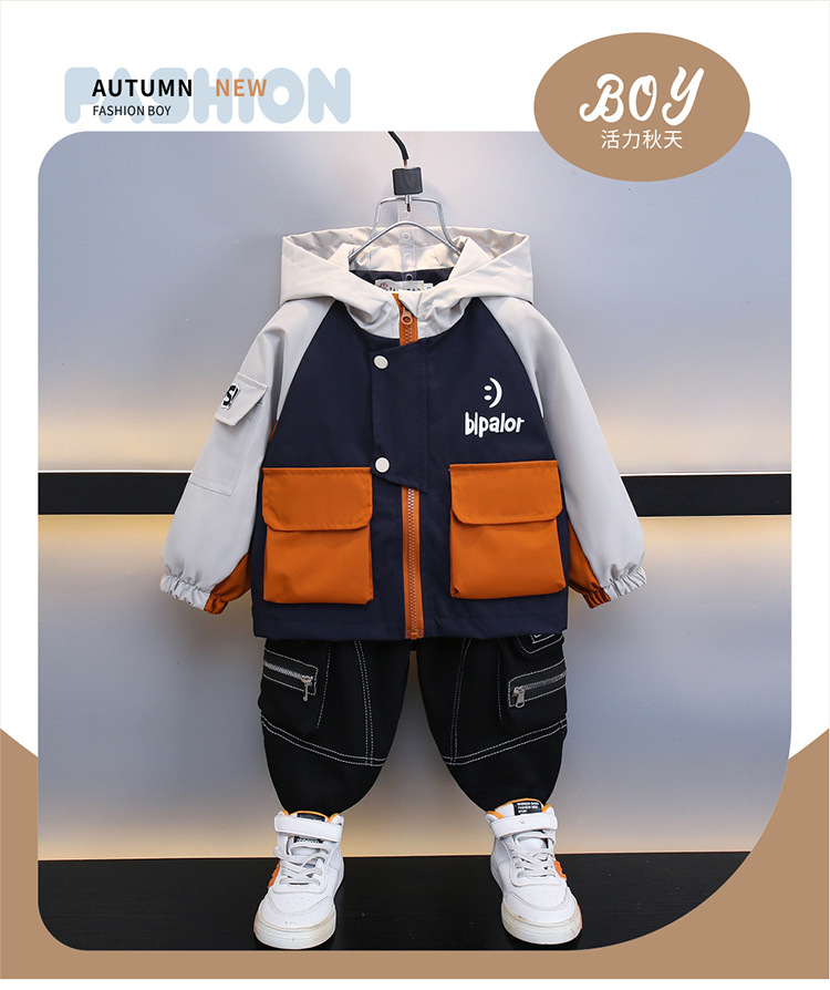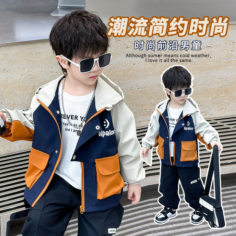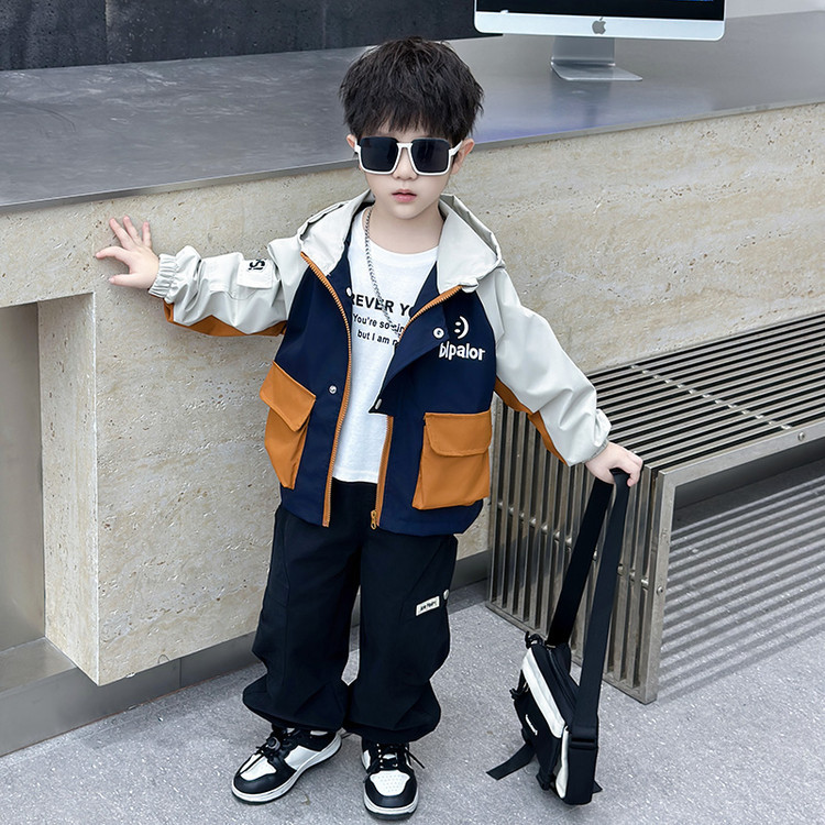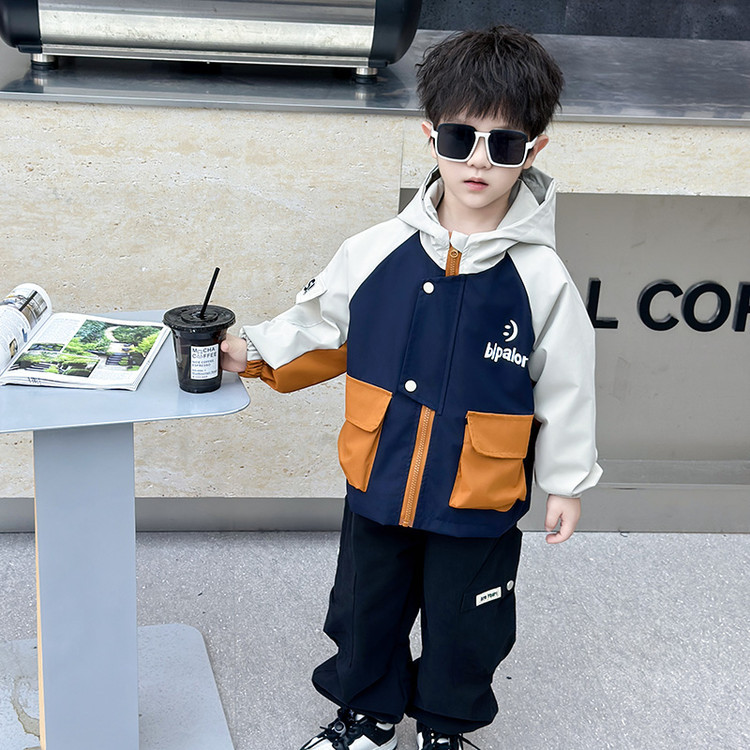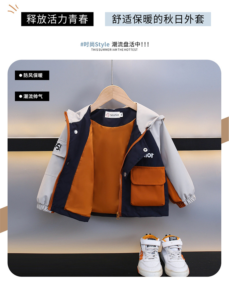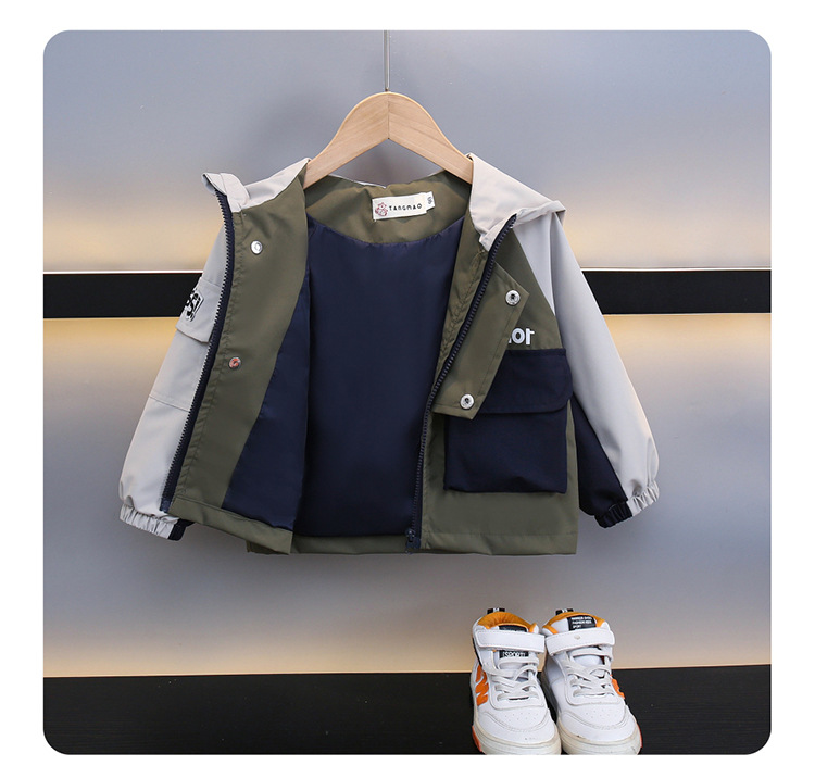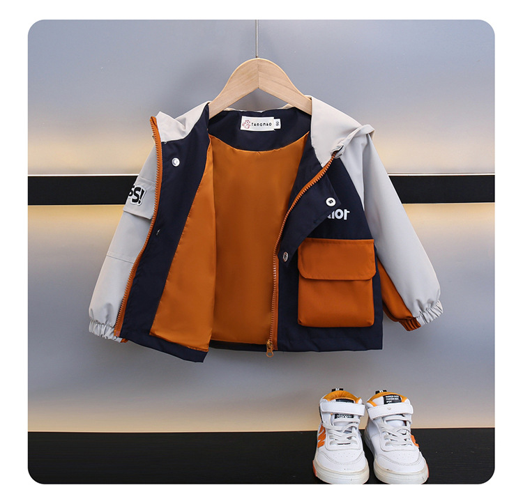 7704 Chaqueta de chaquetas para niños Otoño 2025 Nuevo estilo para niños Cortavientos de otoño para hombres Primavera y otoño Top con capucha
