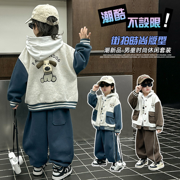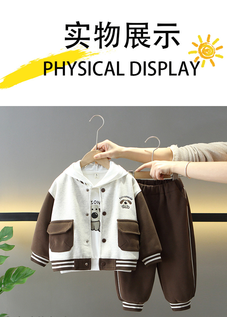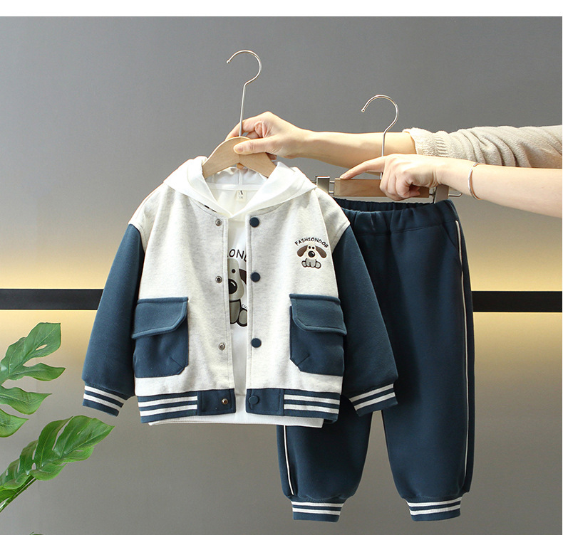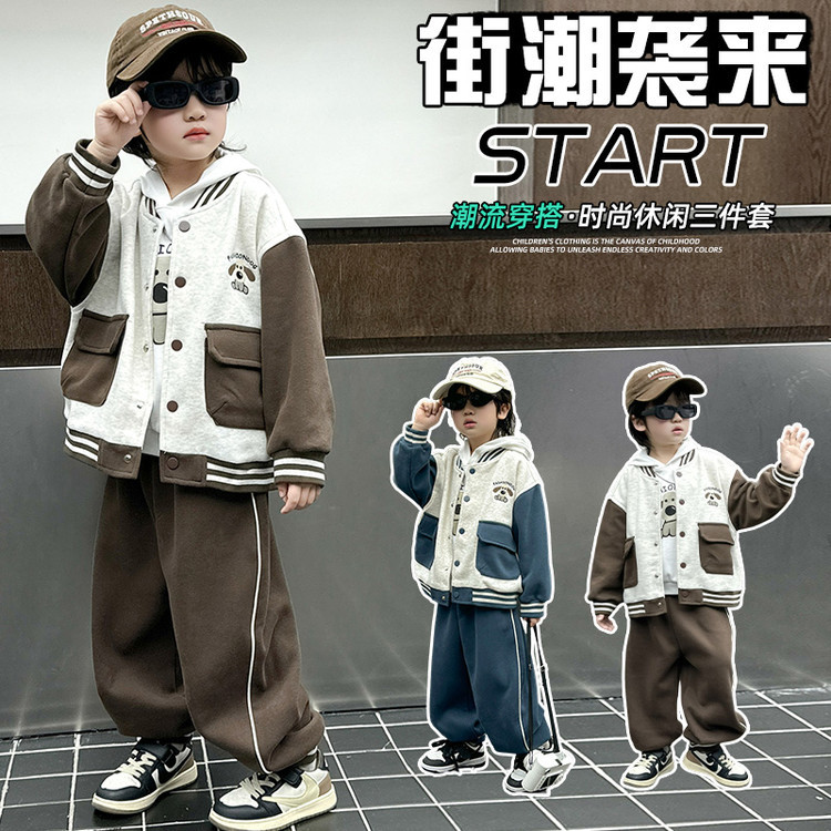 7717 ropa para niños traje de primavera y otoño para niños 2025 nuevo traje de béisbol para niños traje de tres piezas ropa de primavera para bebés de moda