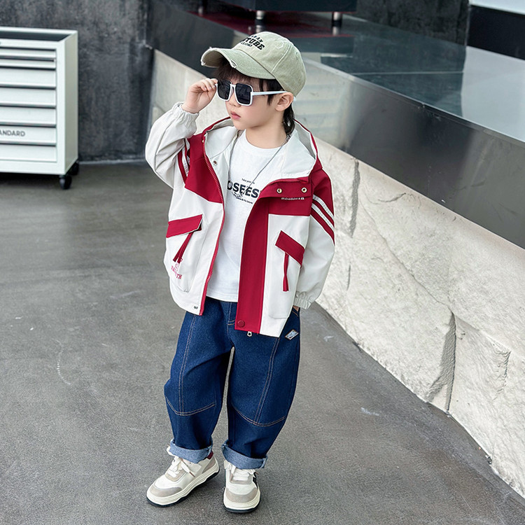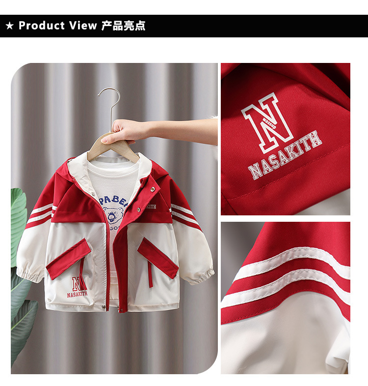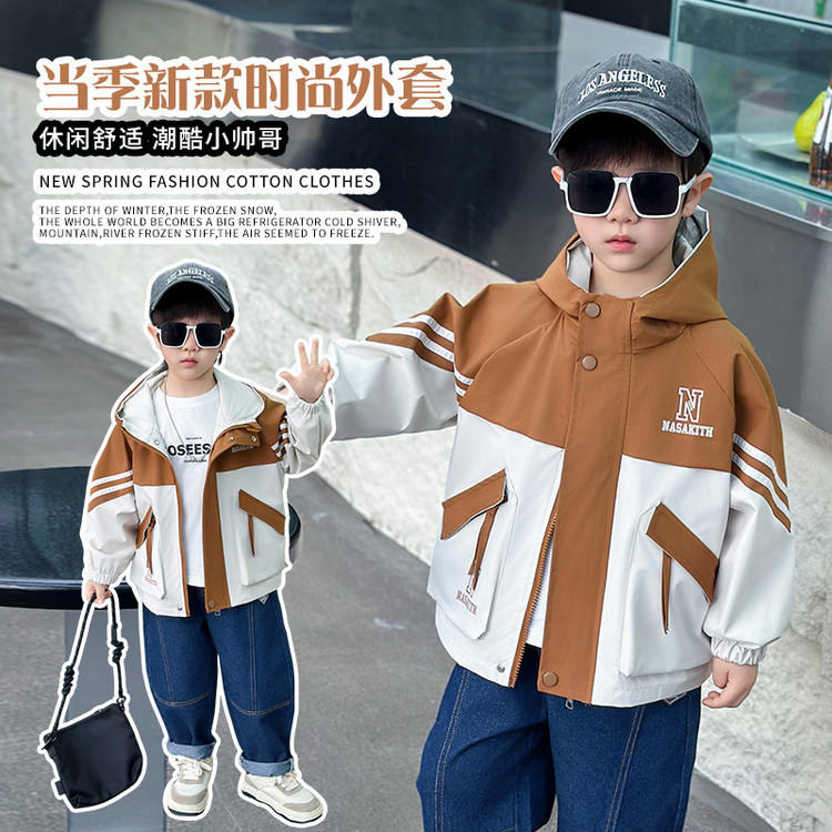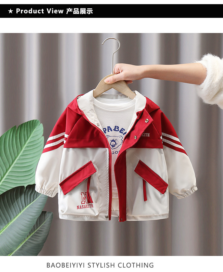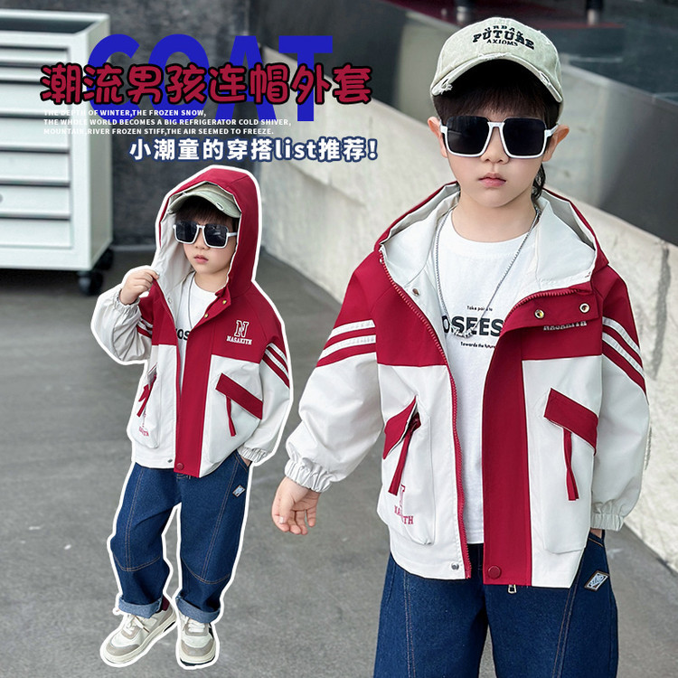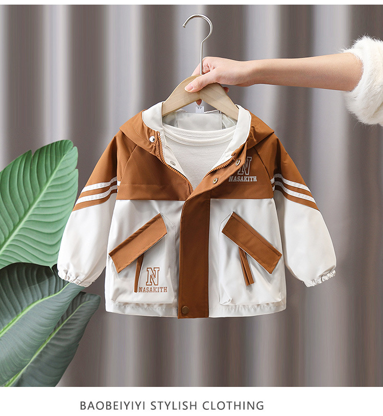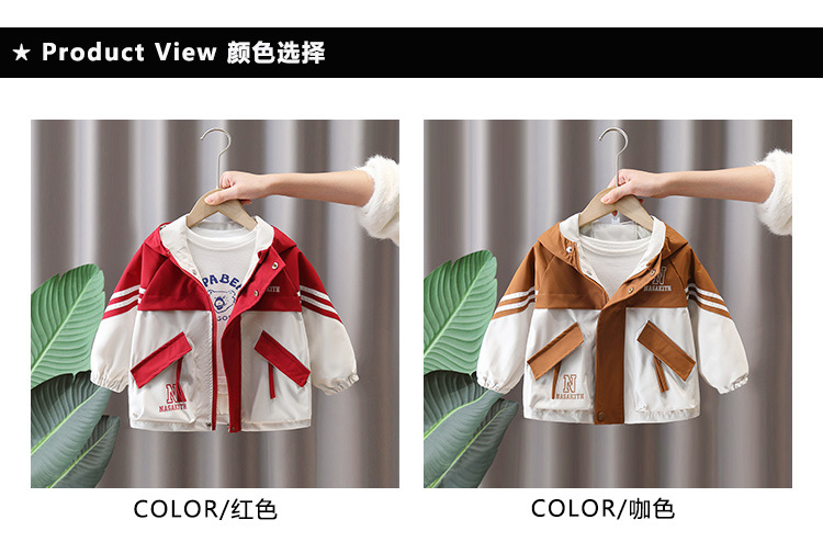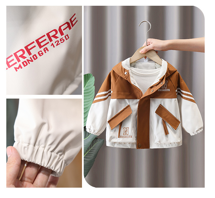 7665 ropa para niños chaqueta de primavera para niños 2025 nueva gabardina con capucha para niños ropa de primavera y otoño color a juego ropa de moda primavera