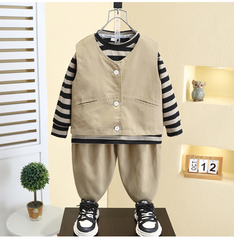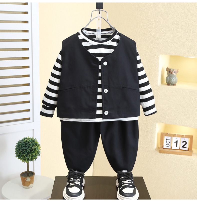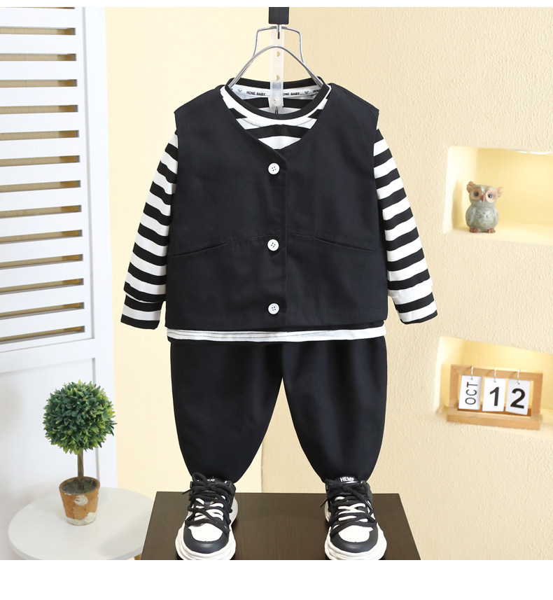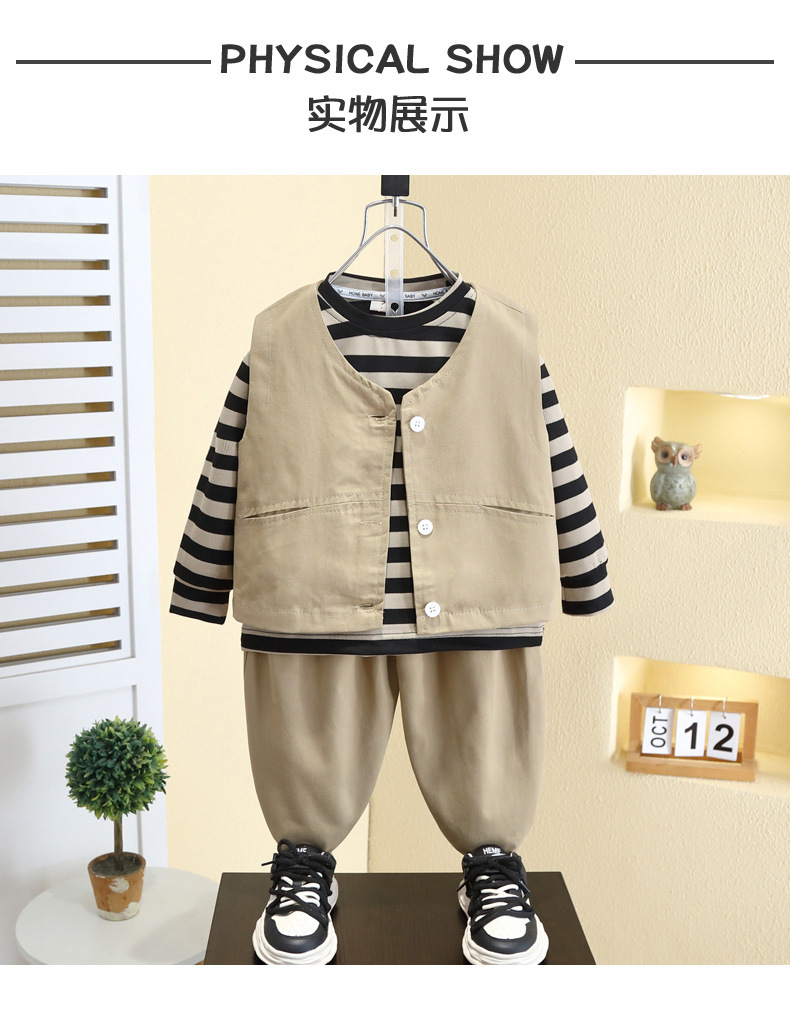 7101 Chaleco a rayas de primavera para niños Traje de primavera y otoño Chaleco guapo Chaleco de tres piezas para bebé