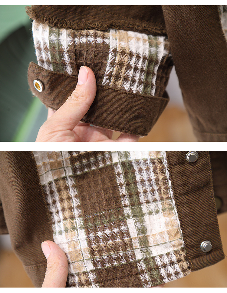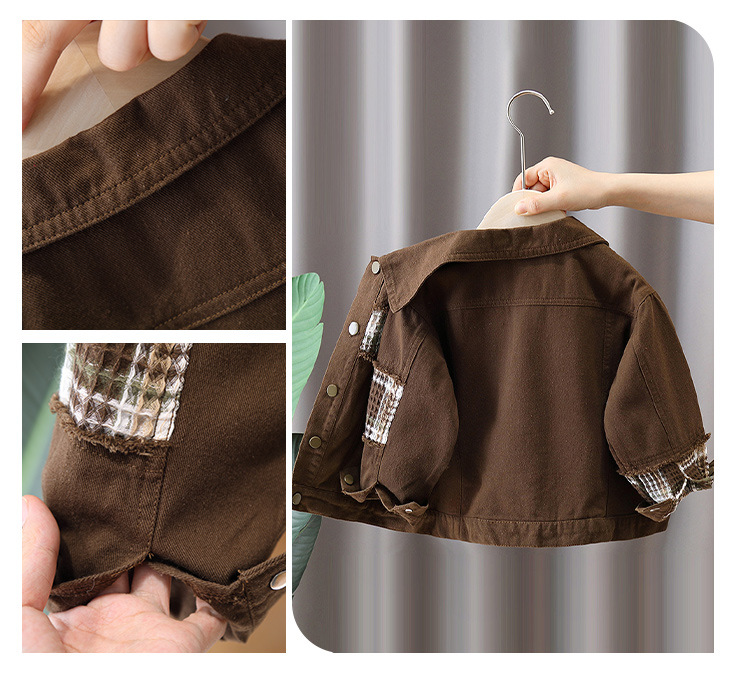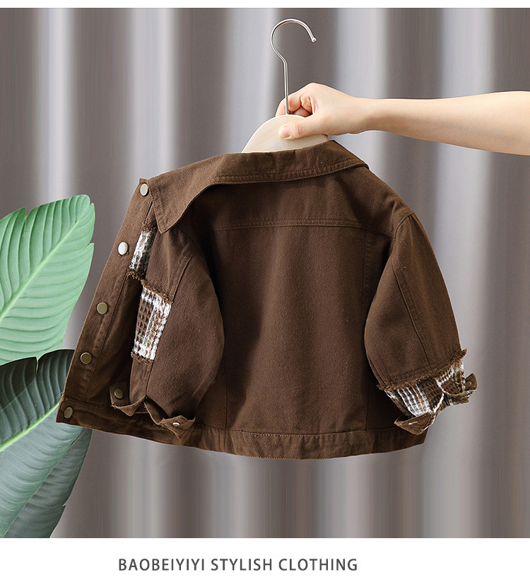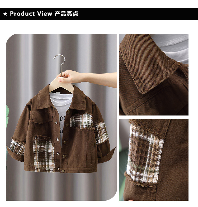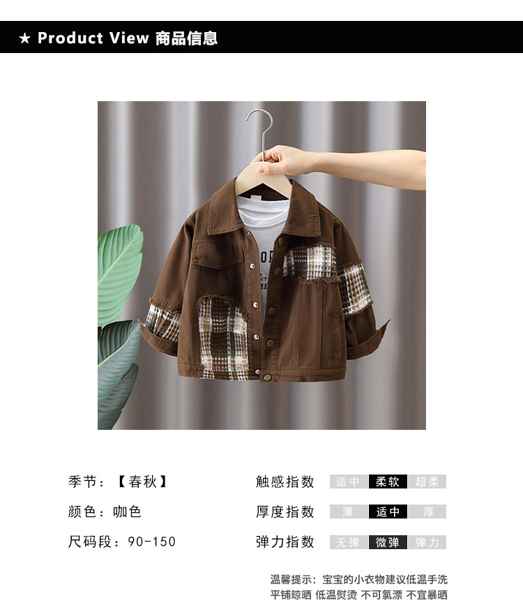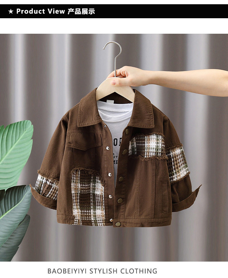 7650 Chaqueta de primavera para niños Chaqueta a cuadros con costuras de moda Chico fresco y guapo Primavera y otoño Nueva ropa de calle frita Primavera