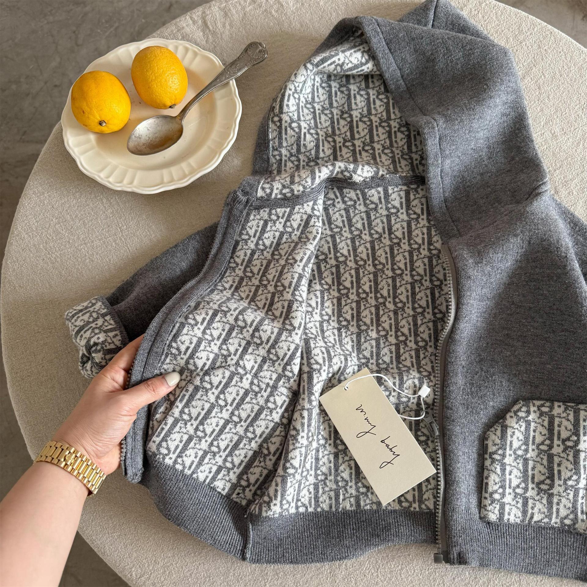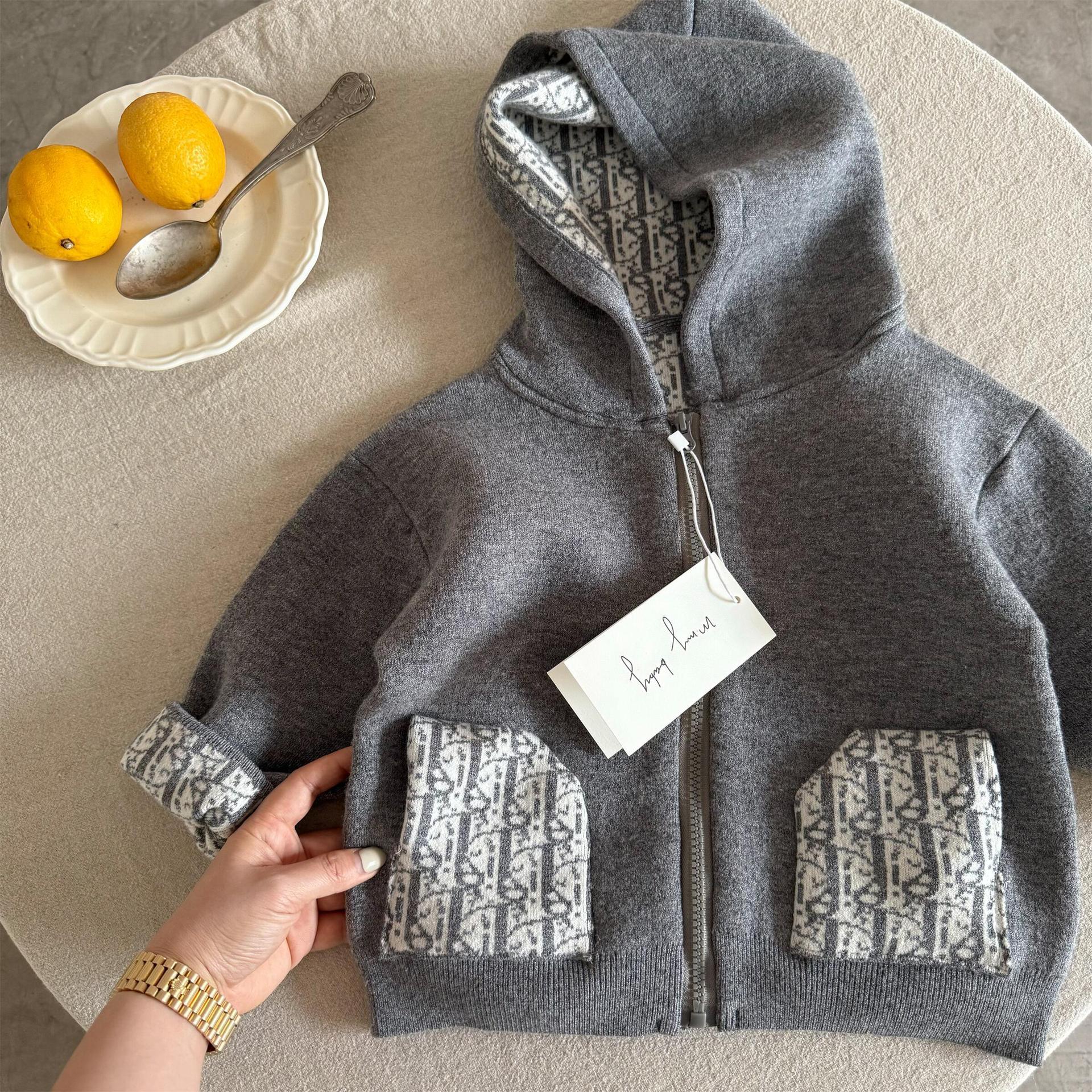 Suéter de limón salado para siete niños 25 nuevos productos de primavera para hombres y mujeres Cárdigan de jacquard con capucha Chaqueta de lana con cremallera para bebés