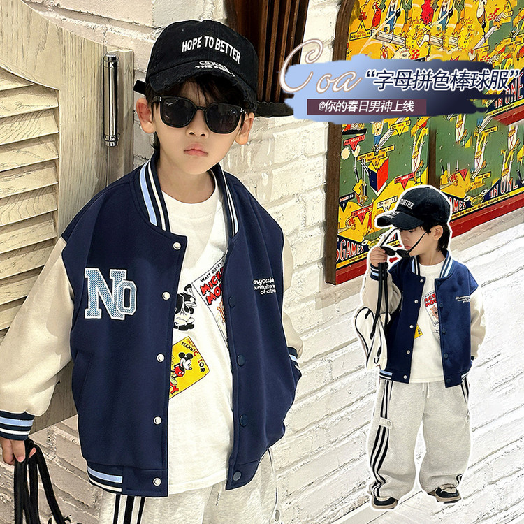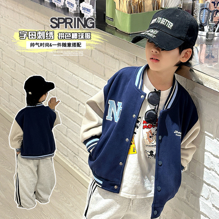 7646 uniforme de béisbol de primavera para niños 2025 nueva chaqueta a juego de colores de moda para niños primavera y otoño guapo casual