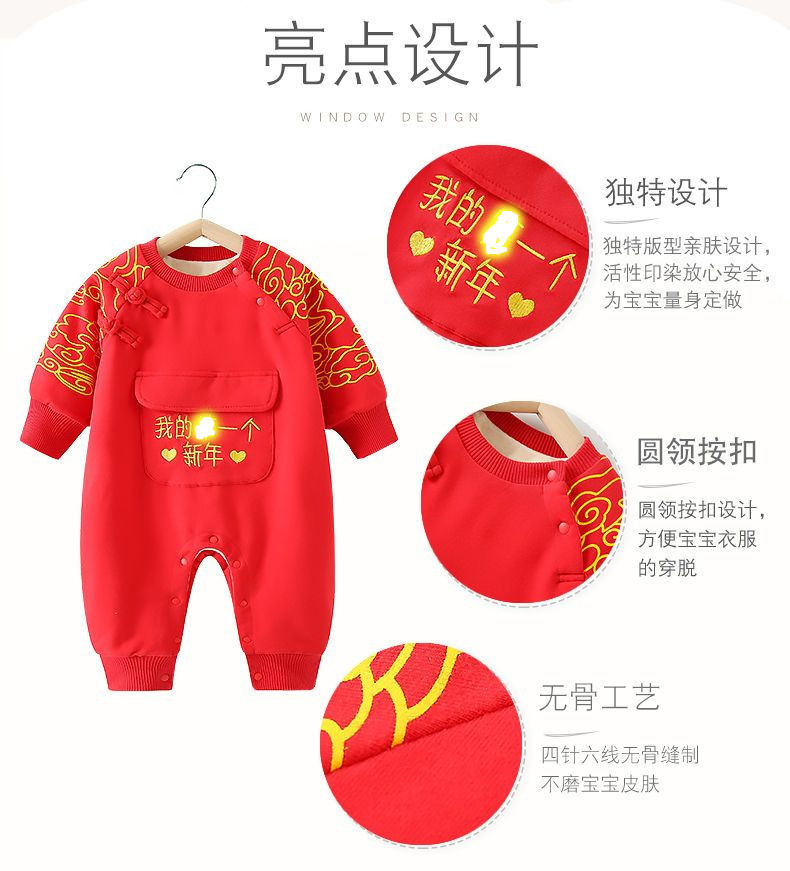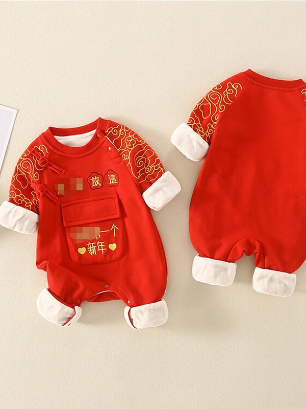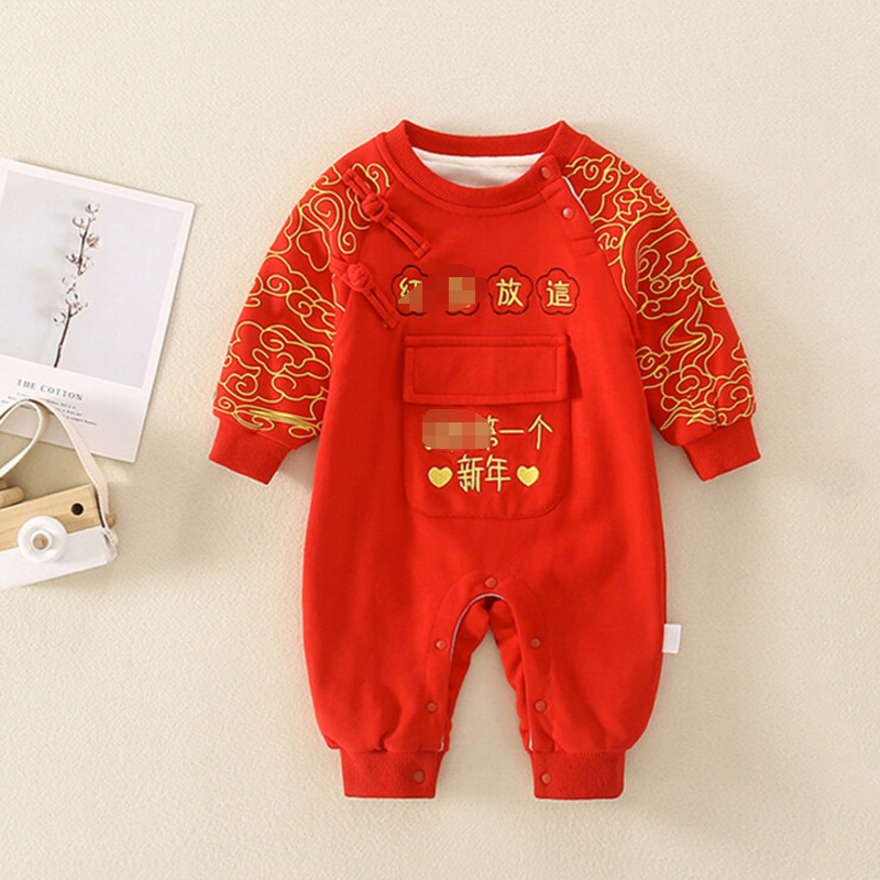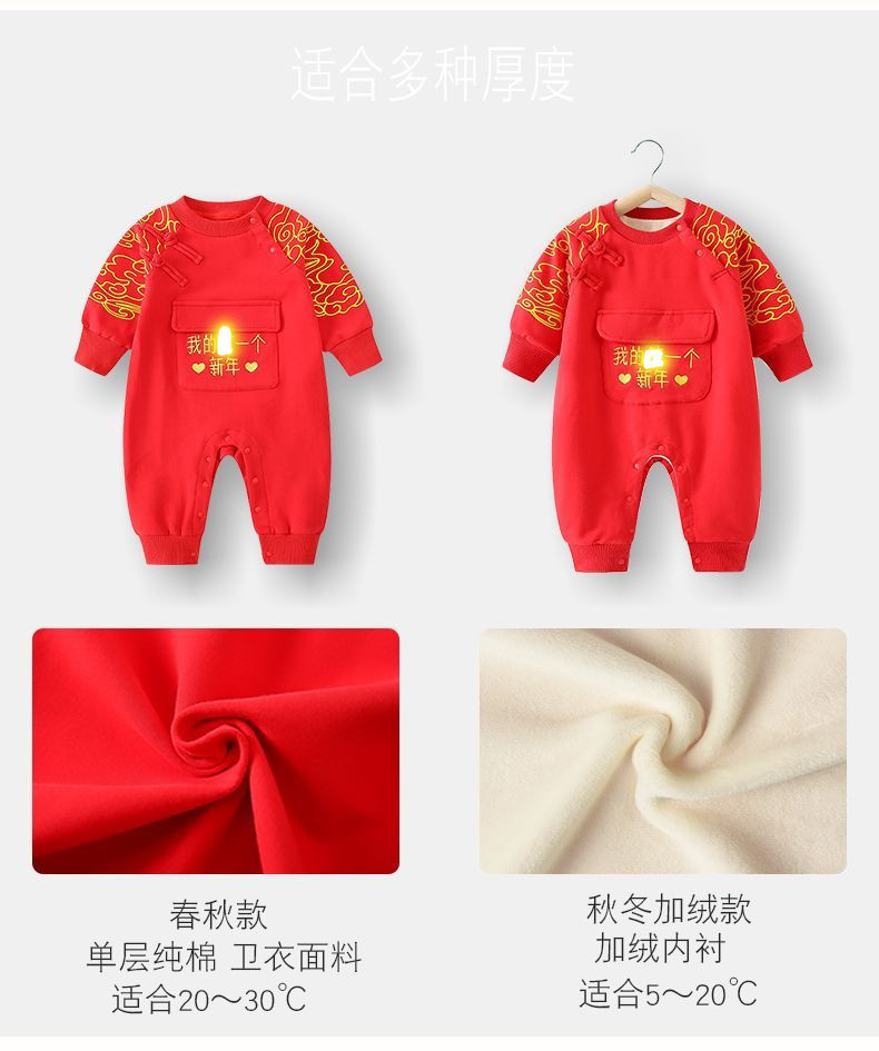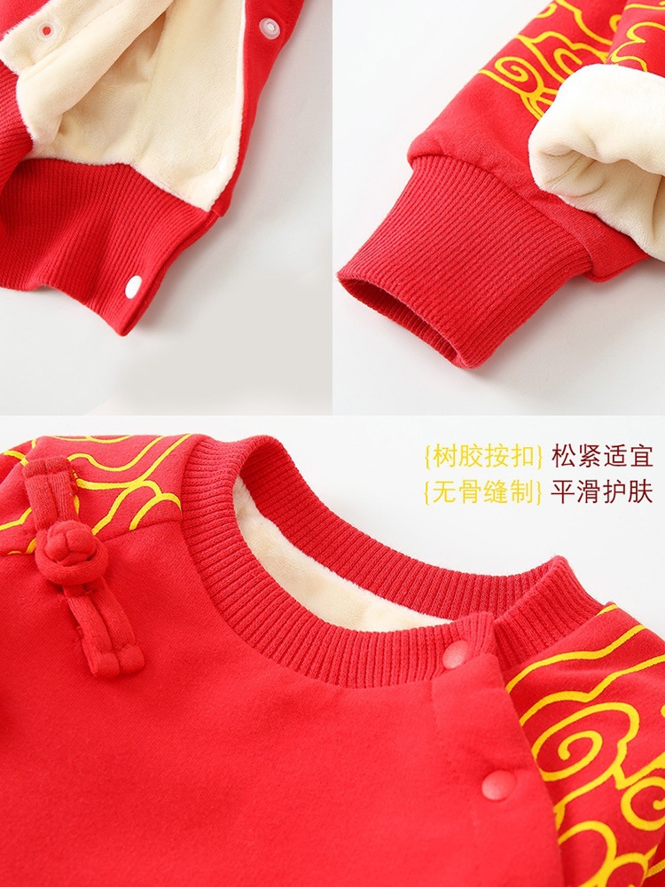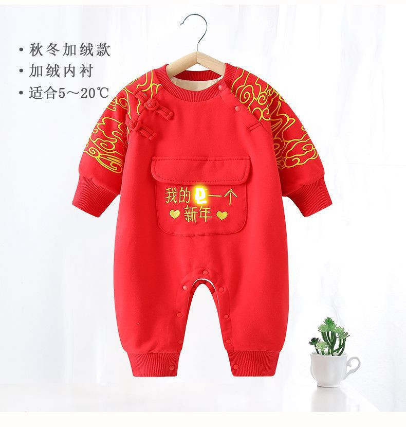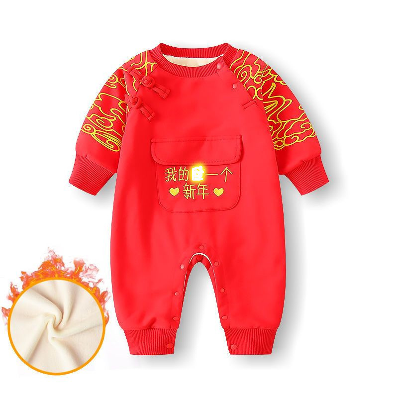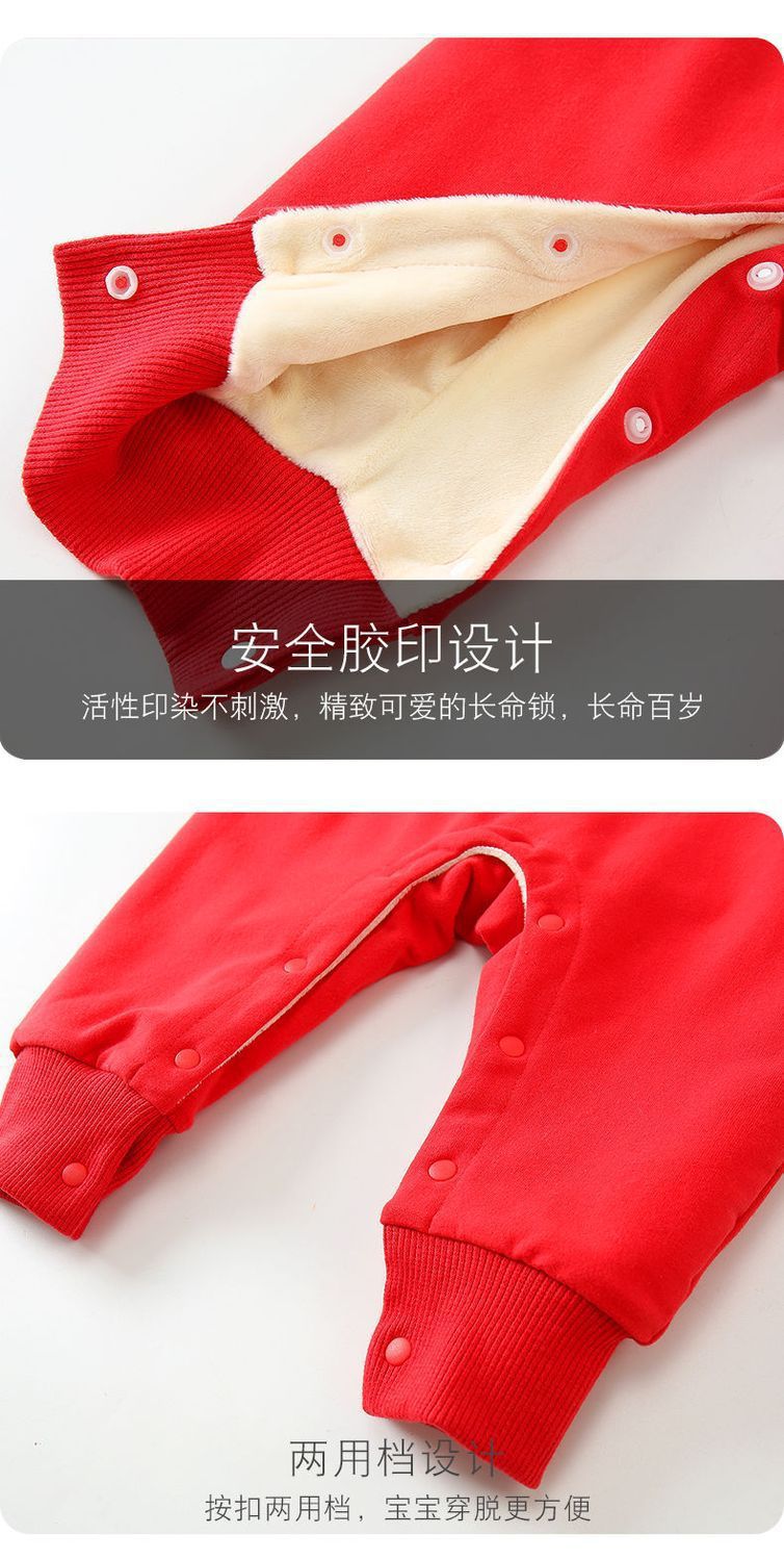 Bebé Otoño e Invierno Polar forrado cálido mono Año Nuevo bebé mameluco rojo festivo recién nacido Cien días Viejo Año Nuevo saludo ropa