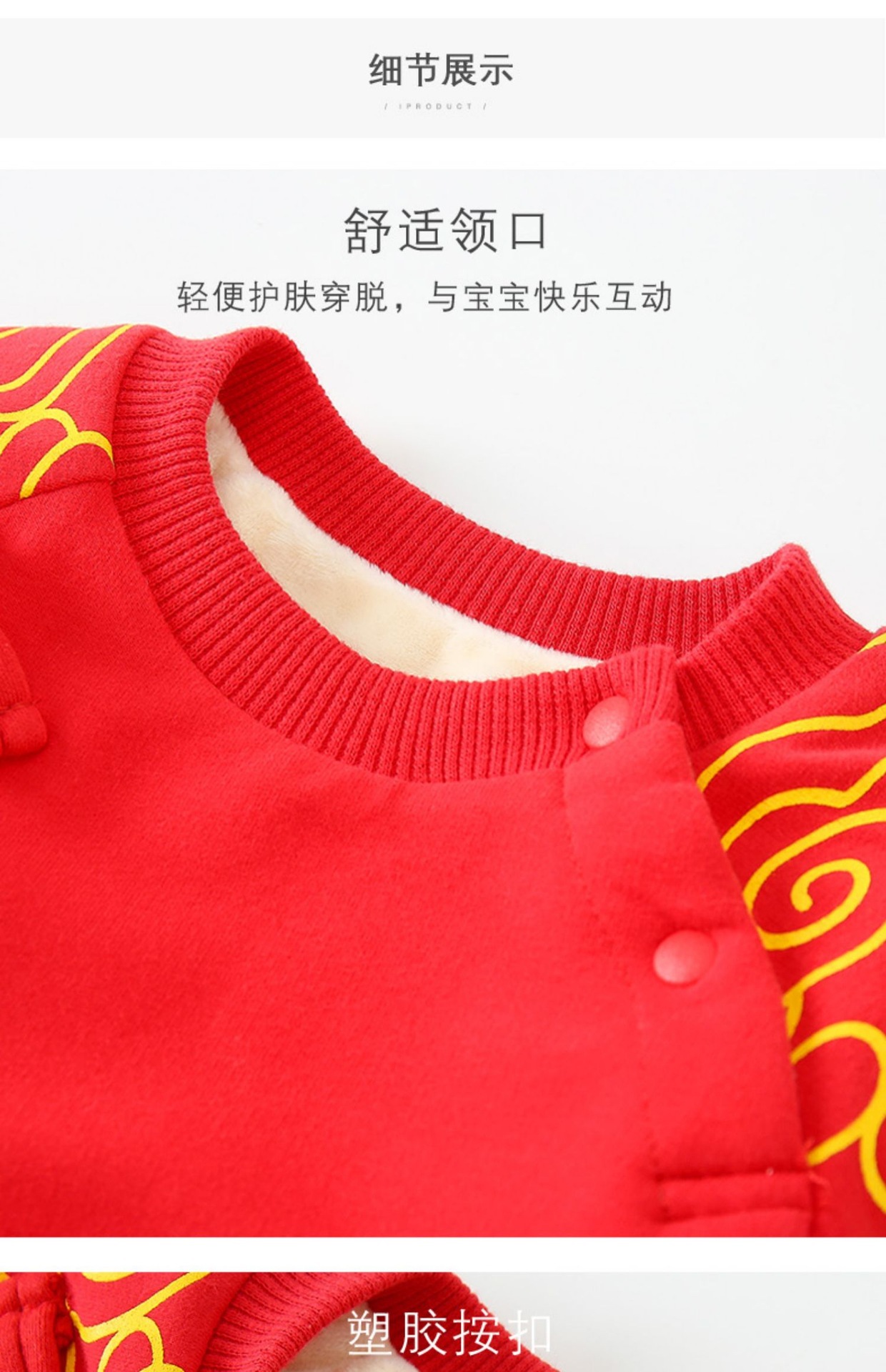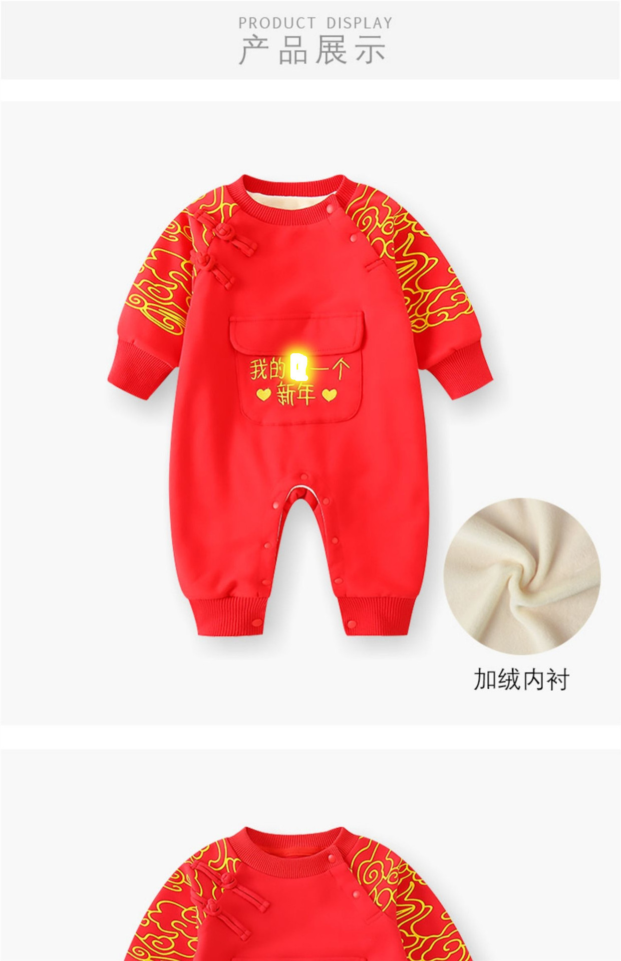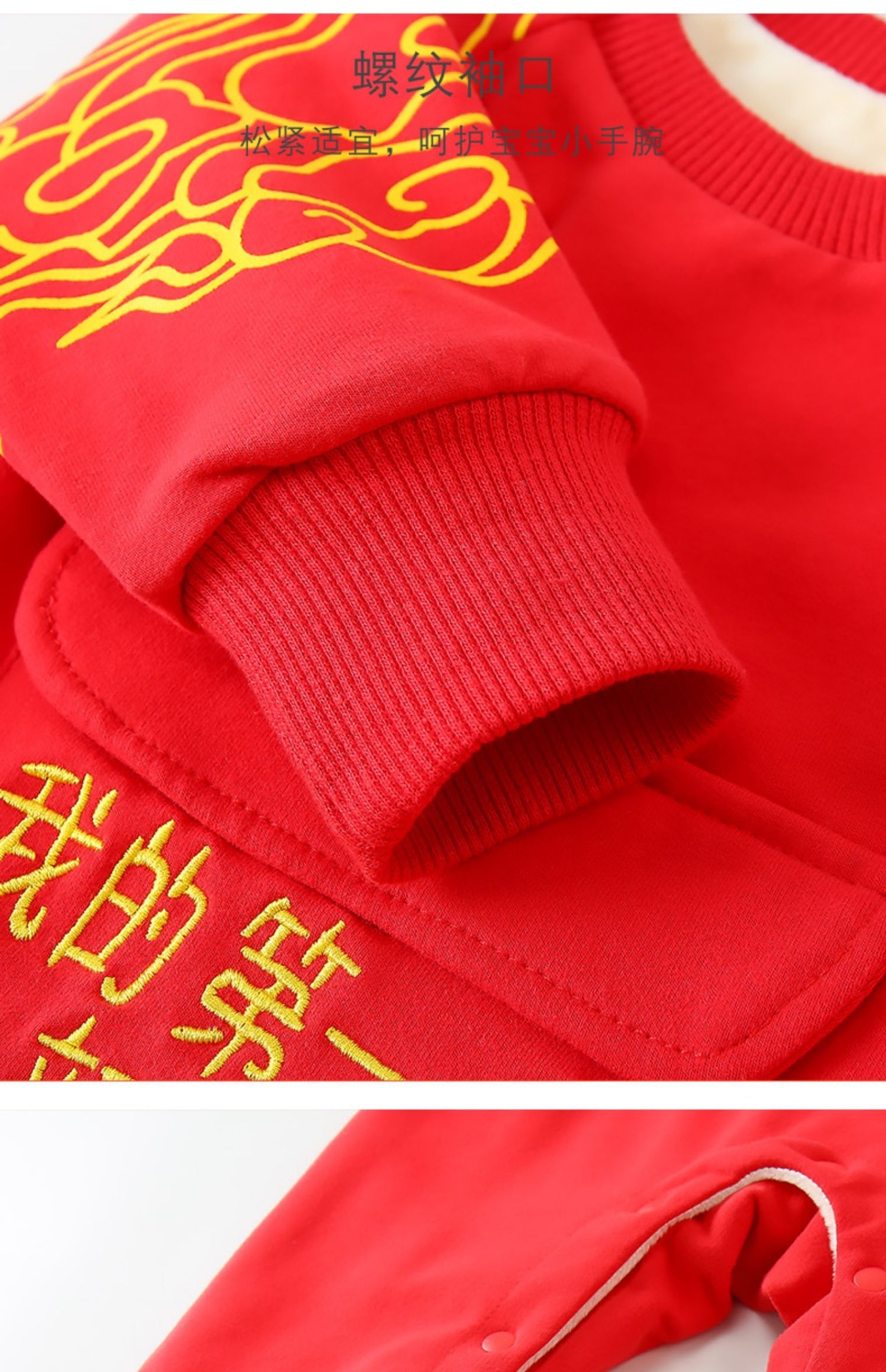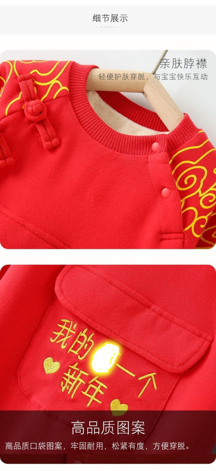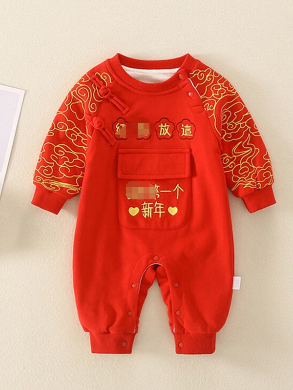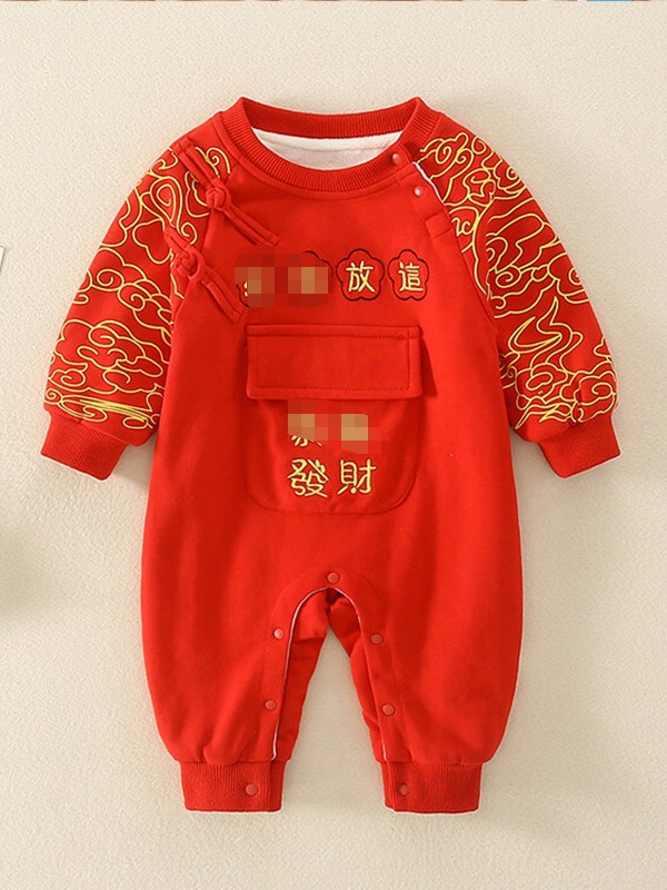 Bebé Otoño e Invierno Polar forrado cálido mono Año Nuevo bebé mameluco rojo festivo recién nacido Cien días Viejo Año Nuevo saludo ropa
