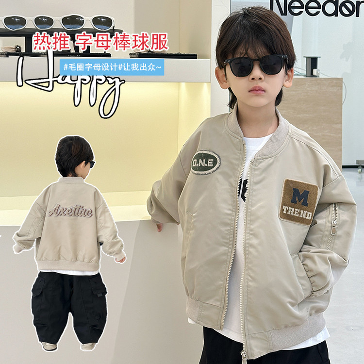 7664 chaqueta de primavera para niños 2025 nuevo estilo chico guapo traje de béisbol de moda coreana chaqueta de primavera y otoño