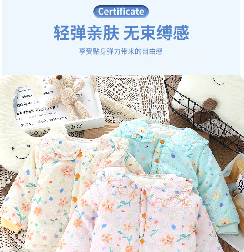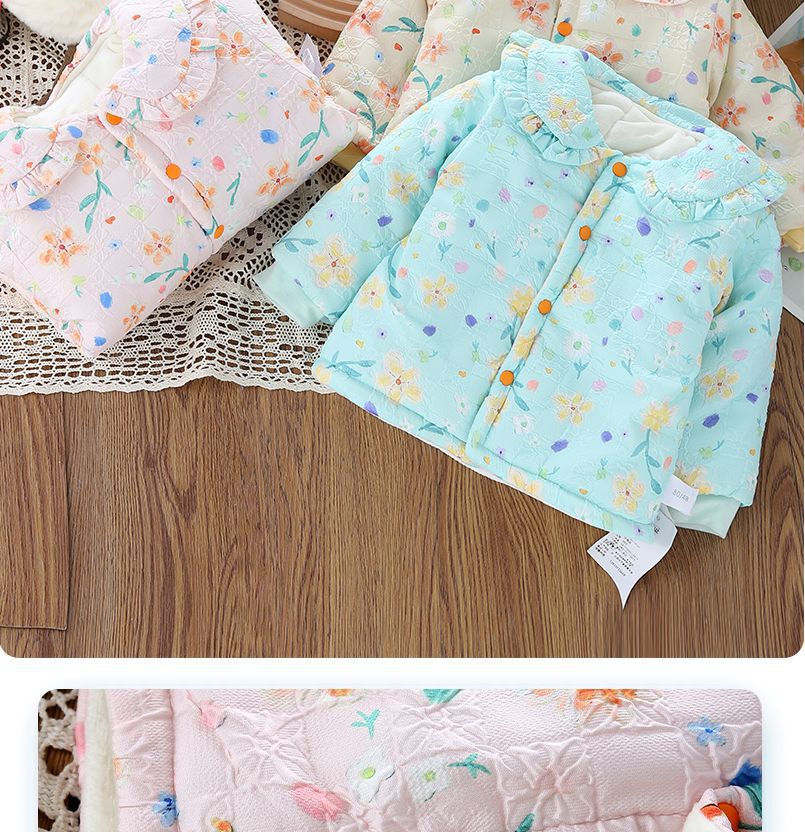 El nuevo Otoño e Invierno del bebé acolchado de algodón acolchado Chaqueta acolchada de algodón para niñas con flores chinas Abrigo acolchado de algodón para niños Chaqueta acolchada de algodón