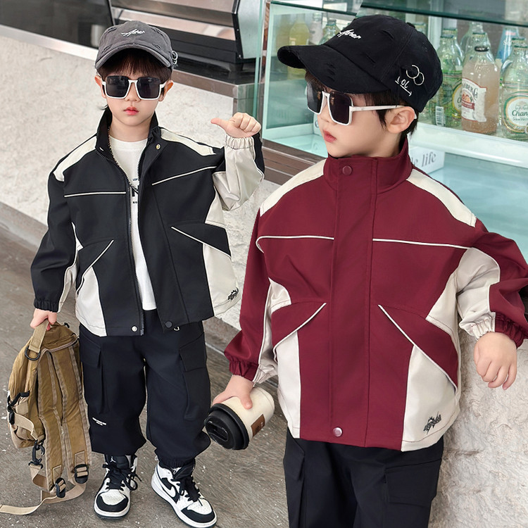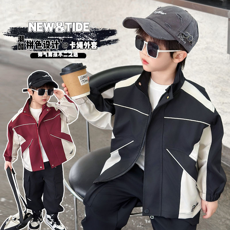 7657 chaqueta cortavientos a juego de colores para niños 2025 nueva ropa de primavera y otoño ropa con capucha para niños chaqueta de moda de primavera