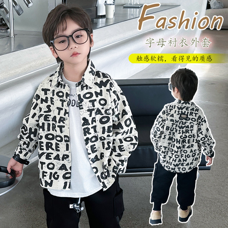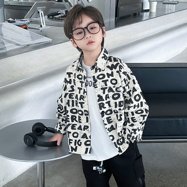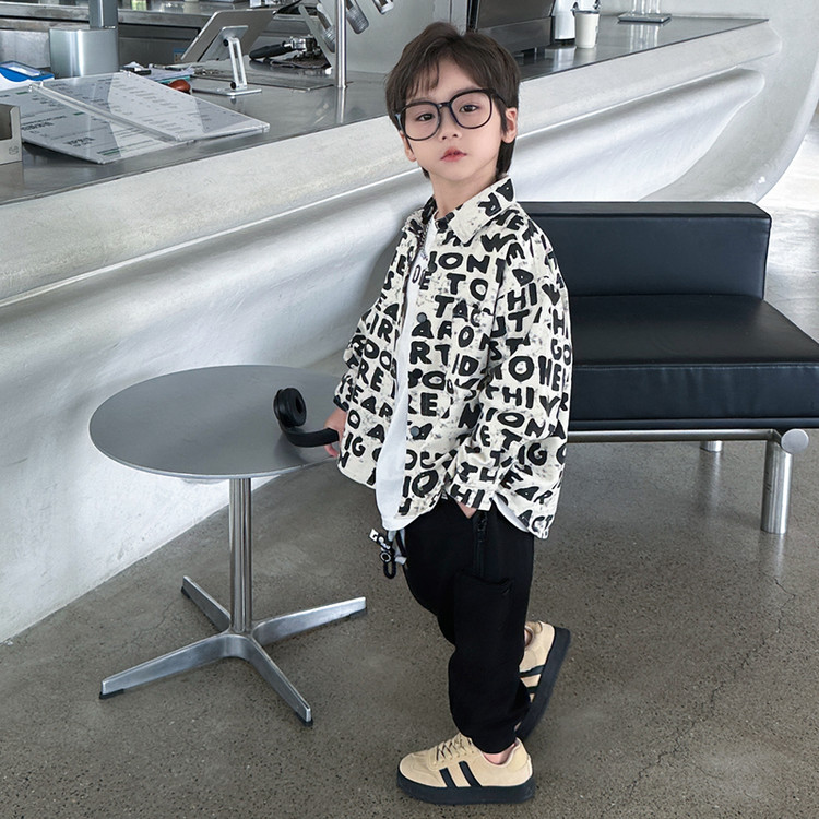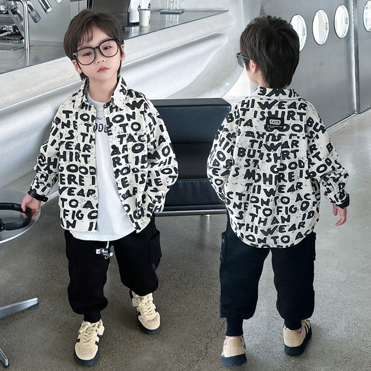 7601 chaqueta de primavera y otoño para niños 2025 nueva camisa coreana para niños top ropa para niños pequeños y medianos estilo occidental de otoño