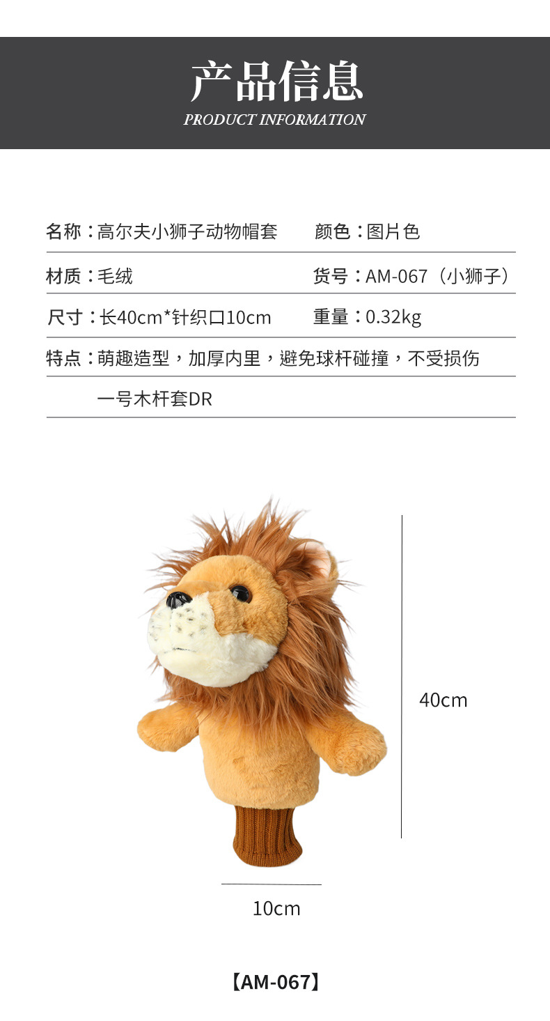 Cubierta protectora de palo de golf de león pequeño Cubierta de cabeza de palo de animal de dibujos animados