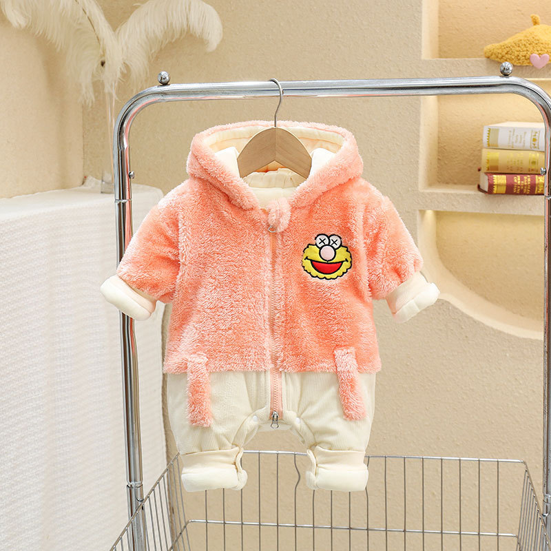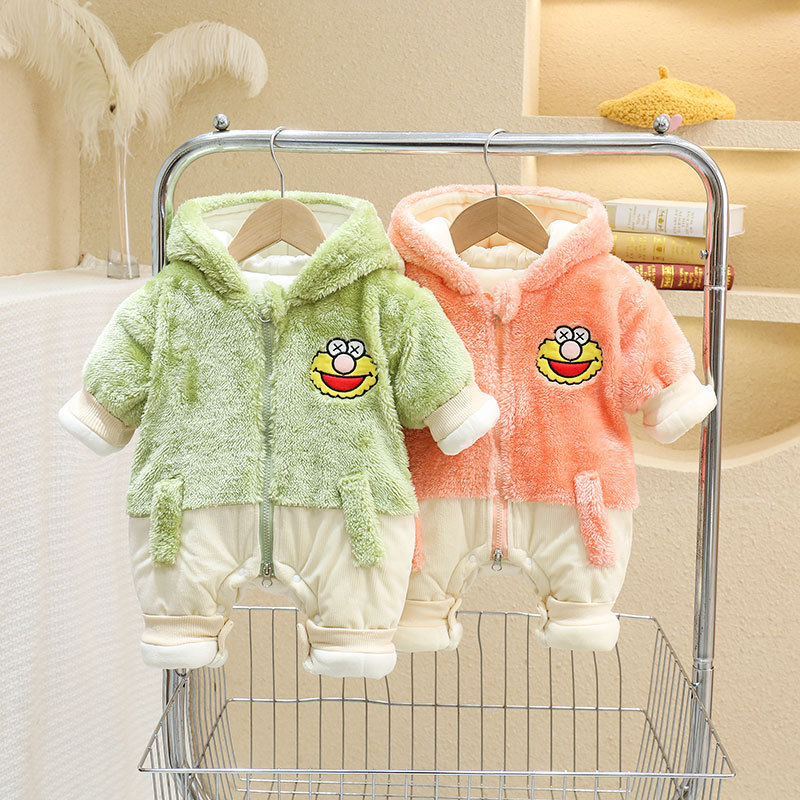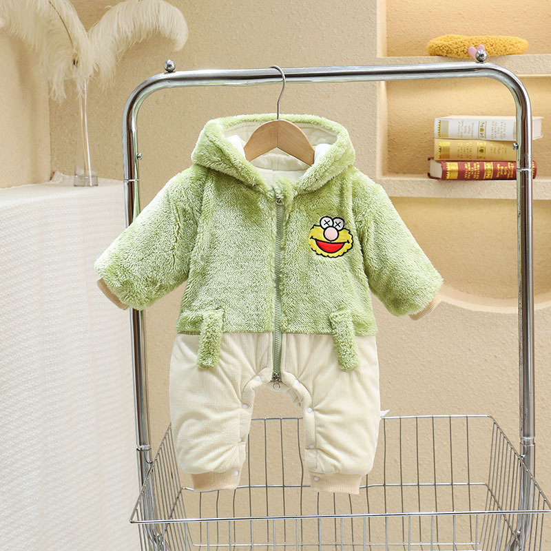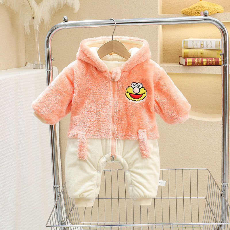 Mono engrosado forrado de lana de invierno recién nacido mono masculino y femenino bebé forma de dibujos animados mameluco infantil mameluco de excursión