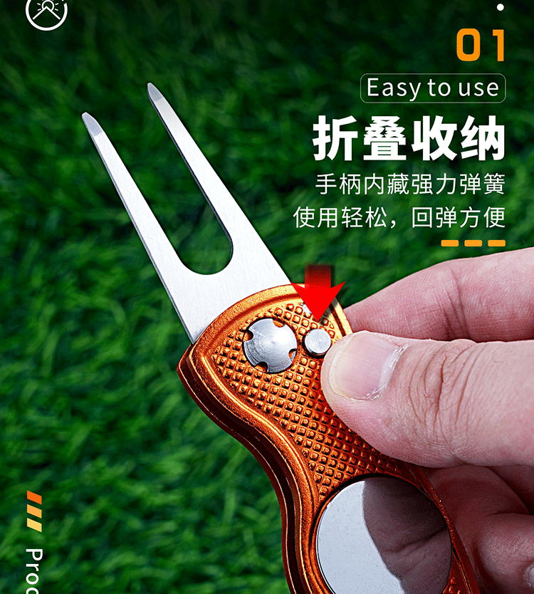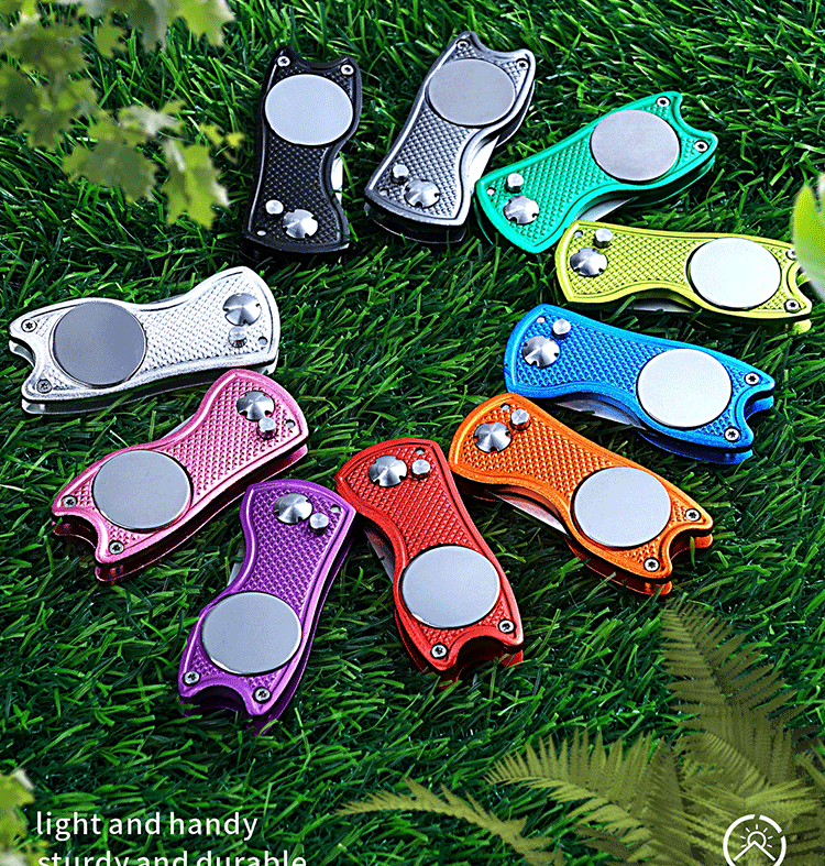 Golf Fruit Ridge tenedor cola de pescado mango de aluminio resorte de acero inoxidable Bola de metal tenedor herramienta de reparación de césped accesorios de golf