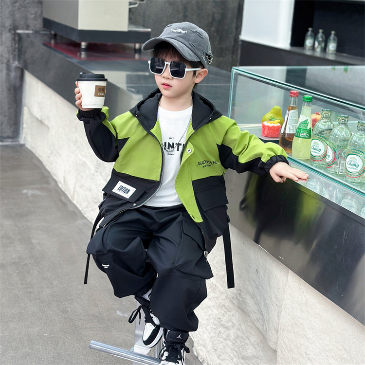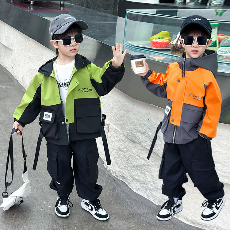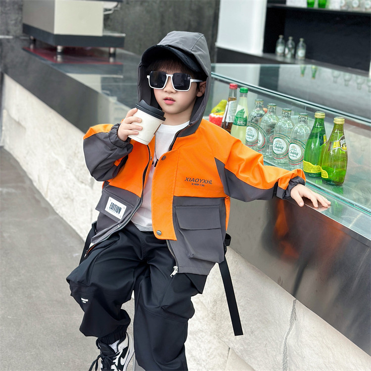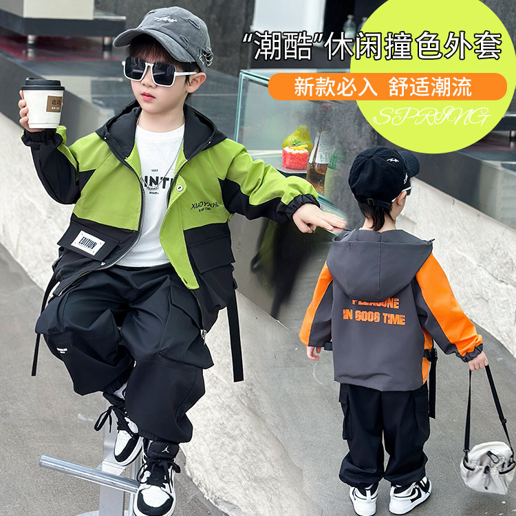 7569 cortavientos de correas a juego de colores para niños 2025 primavera nueva chaqueta casual para niños pequeños y medianos comercio exterior para niños