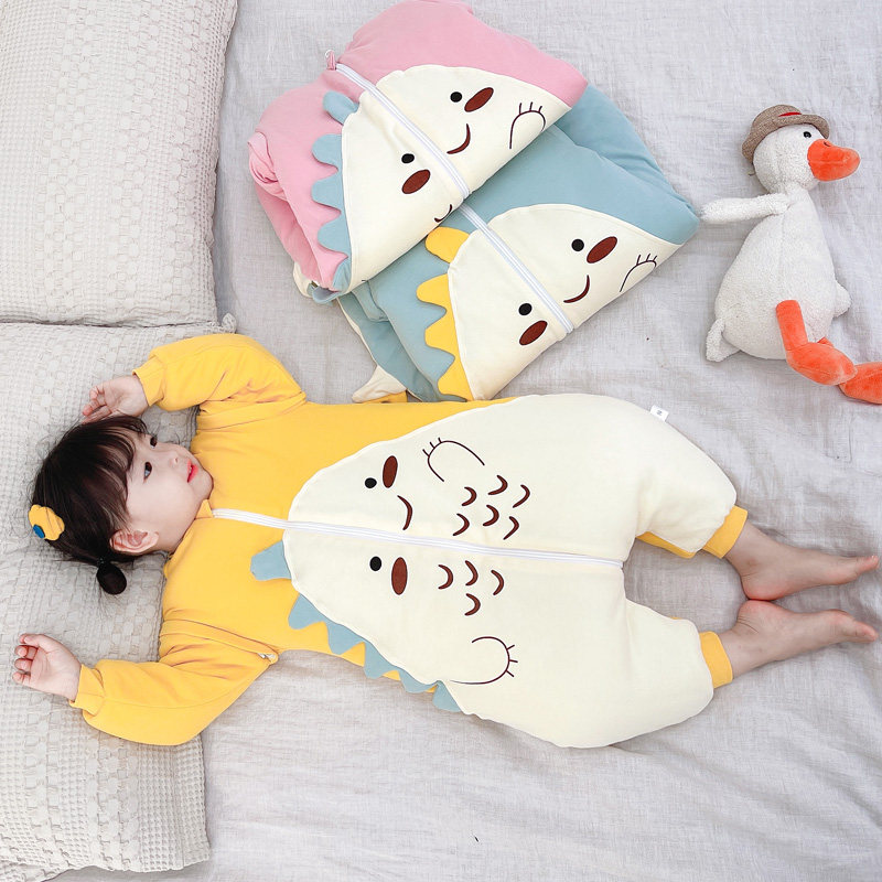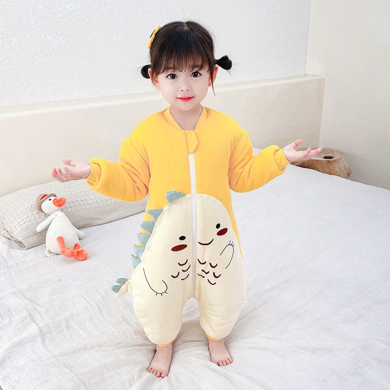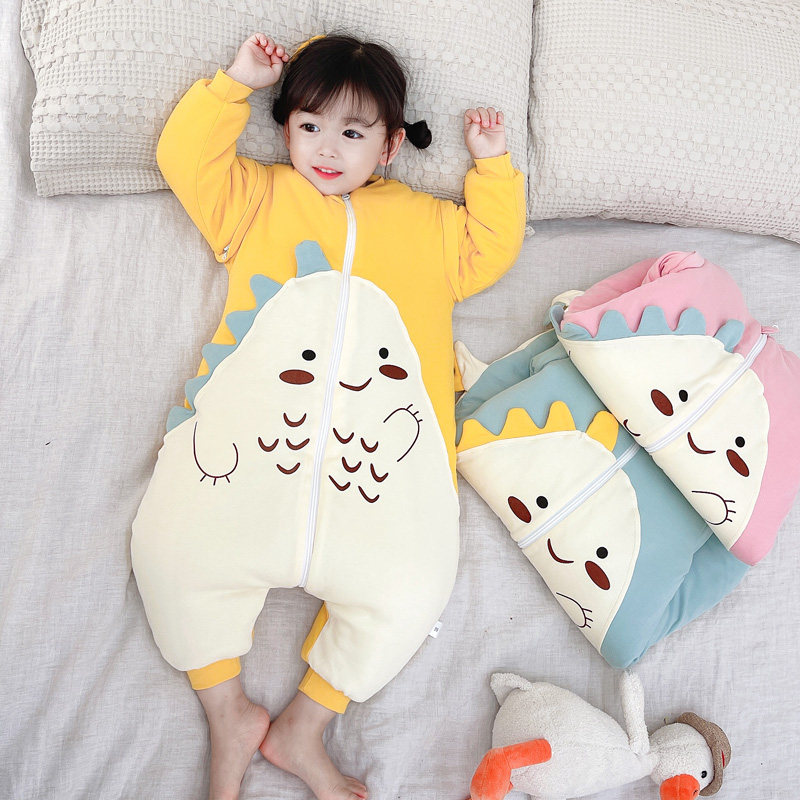 Saco de dormir de pierna dividida de algodón para bebés primavera y otoño delgado cuatro estaciones saco de dormir grande universal edredón anti-patada para niños otoño e invierno pijamas para bebés