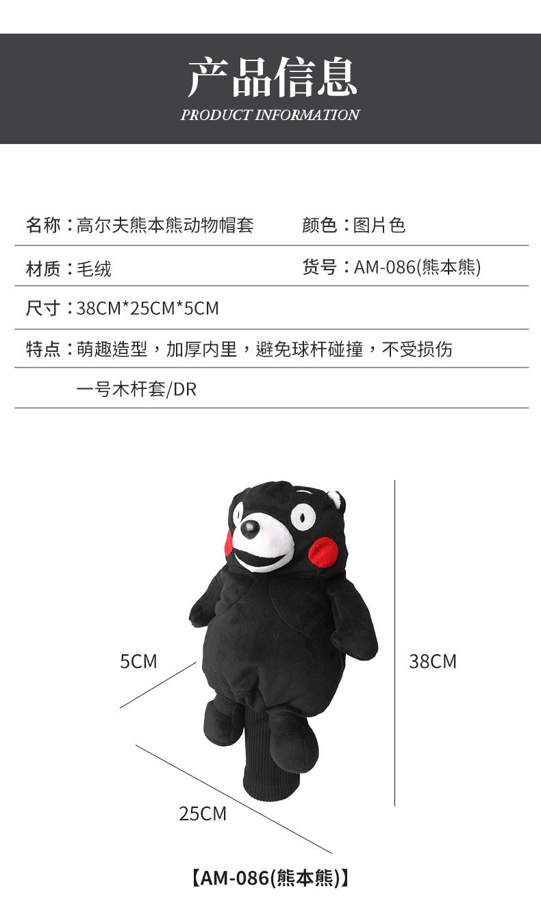 Juego de palos de oso Kumamoto transfronterizo, juego de golf, juego de palos de relleno, juego de palos de lana, juego de palos de muñeca, comercio exterior