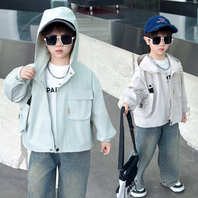 7542 chaqueta de primavera para niños 2025 nuevos modelos de primavera y otoño para niños con capucha top estilo occidental ropa de primavera coreana marea