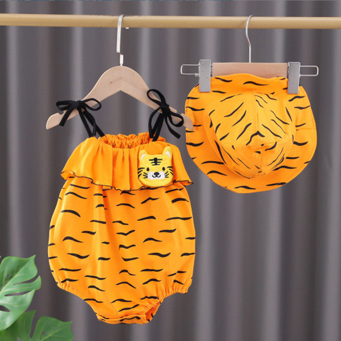 Bebé mono verano delgada bebé Correa mameluco sin mangas princesa Occidental recién nacido Ropa de algodón puro sombrero para el envío