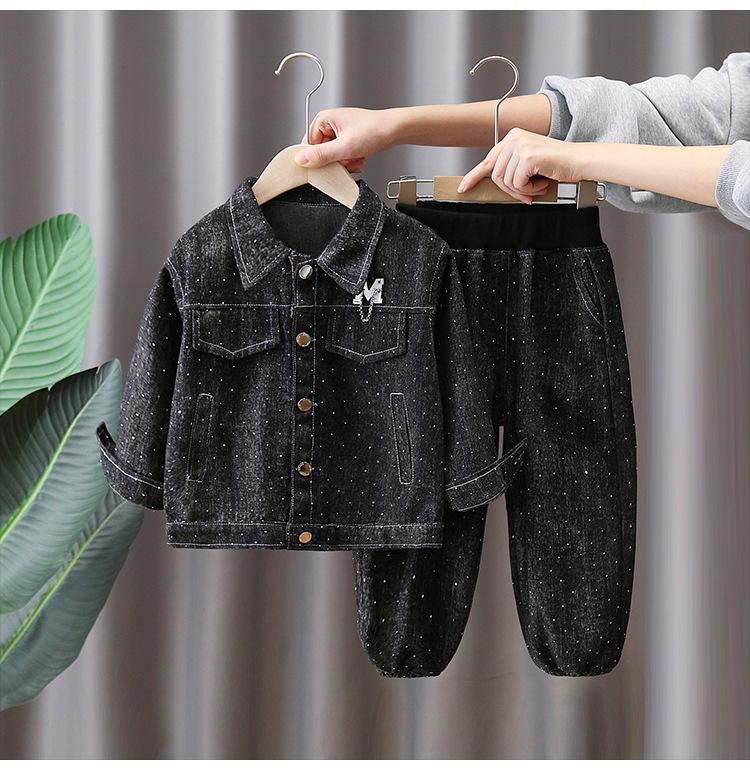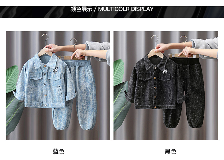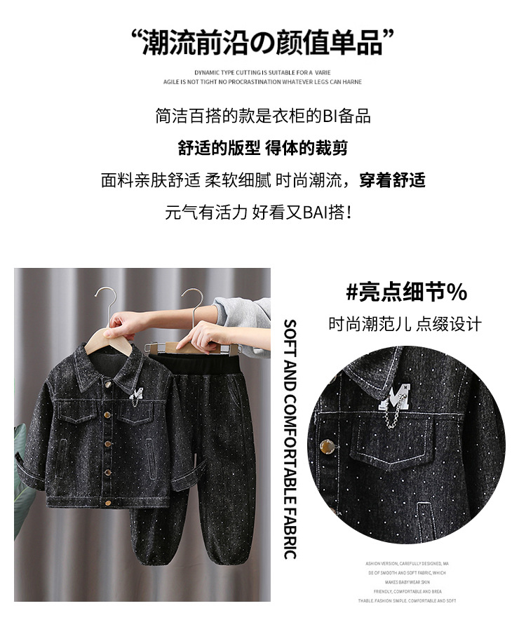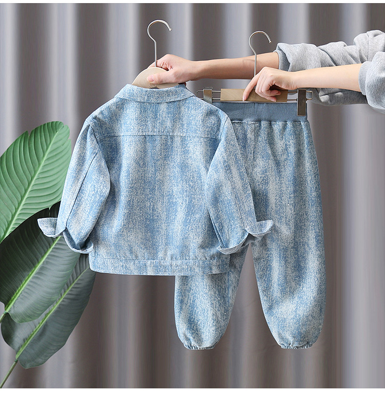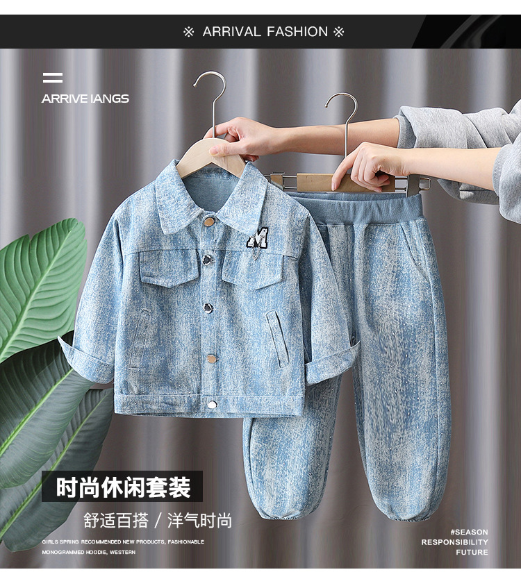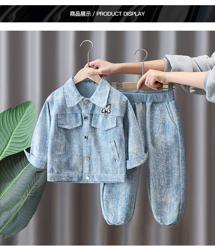 7088 traje de primavera para niños 2025 nuevo estilo estilo occidental niños primavera vaquero traje de dos piezas hermoso bebé primavera y otoño