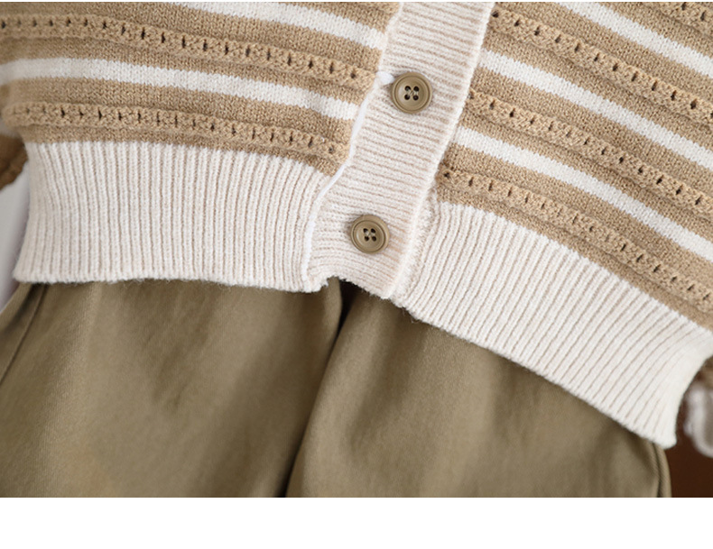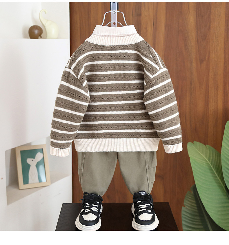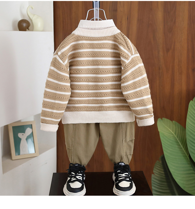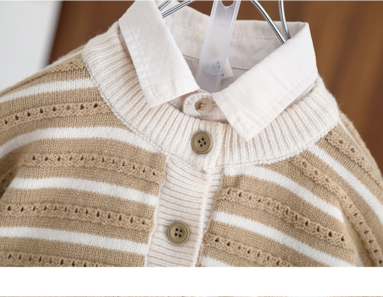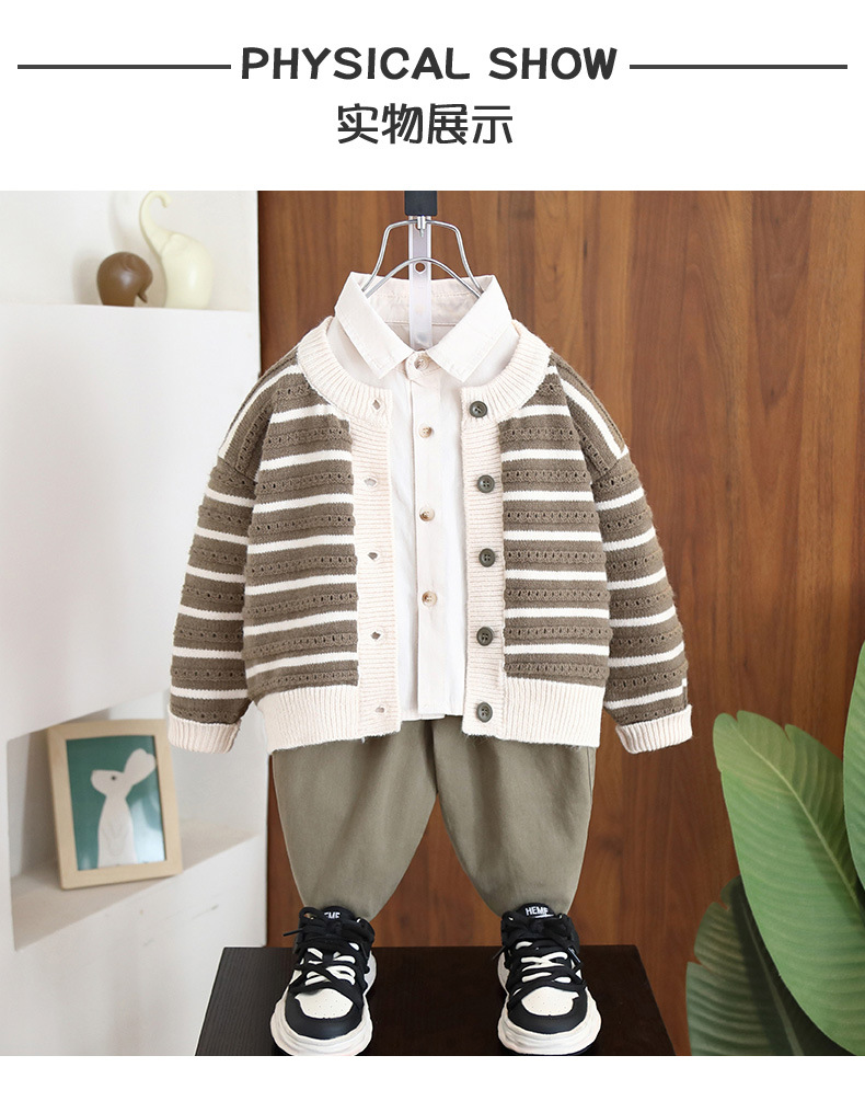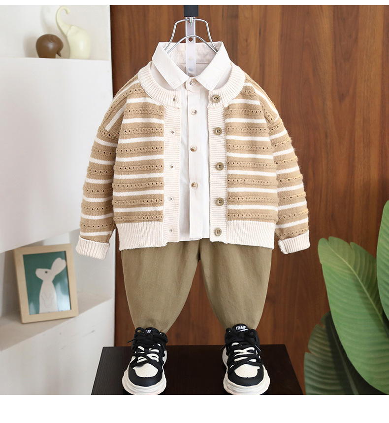 7070 traje de primavera para niños de tres piezas 2025 primavera y otoño nuevo suéter de bebé para niños coreanos traje de cárdigan de punto
