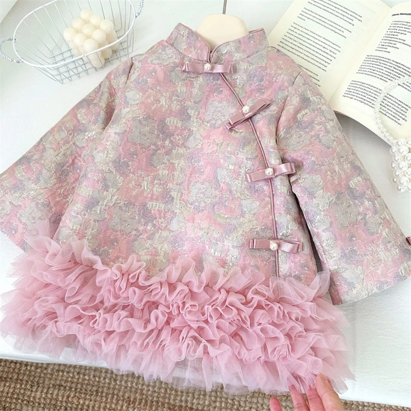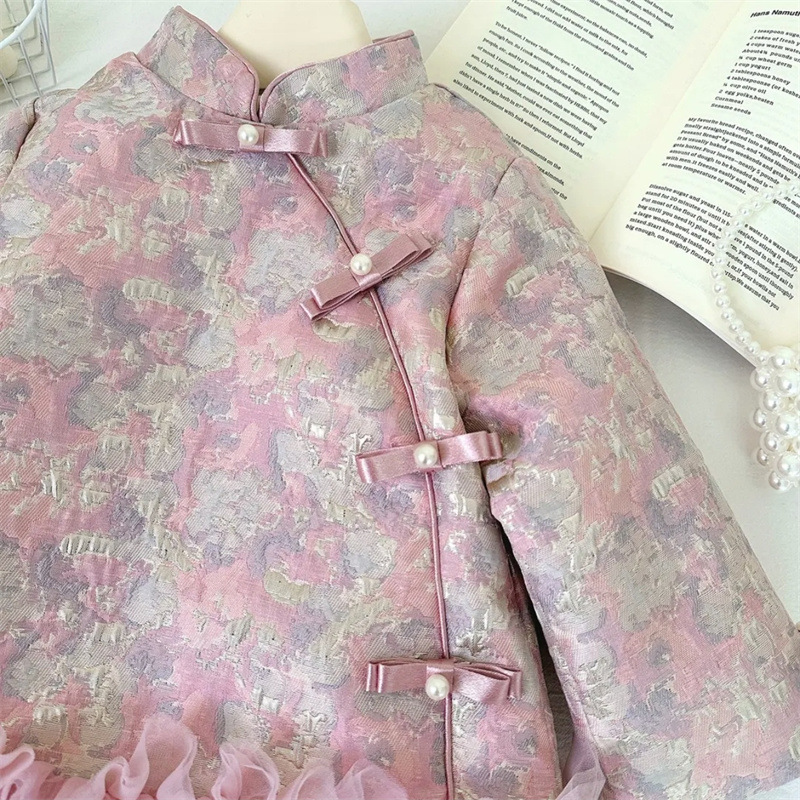 [Segundo en stock] niñas algodón intercalado doble cara vestido chino nuevo vestido de malla china cheongsam vestido de Año Nuevo infantil