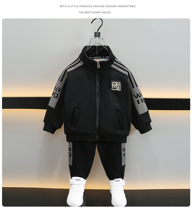 6767 suéter de dos piezas para niños 2025 otoño e invierno nuevo estilo para niños más terciopelo engrosamiento ropa abrigada Traje coreano de moda
