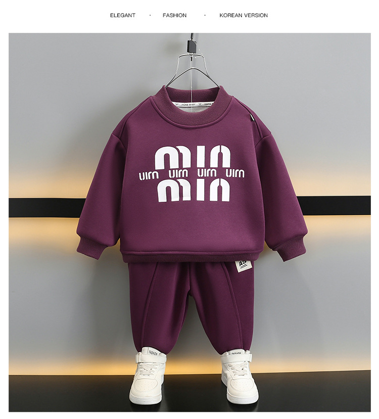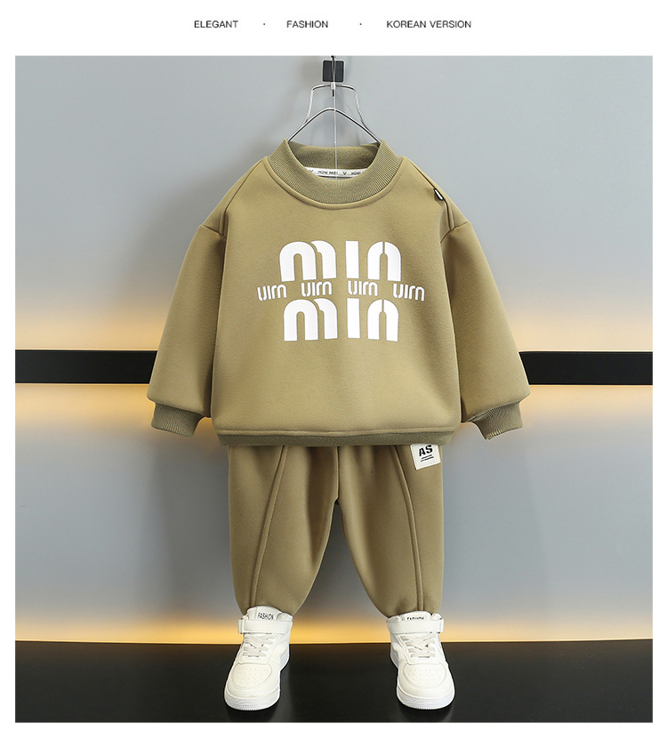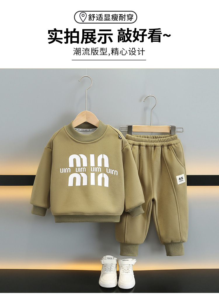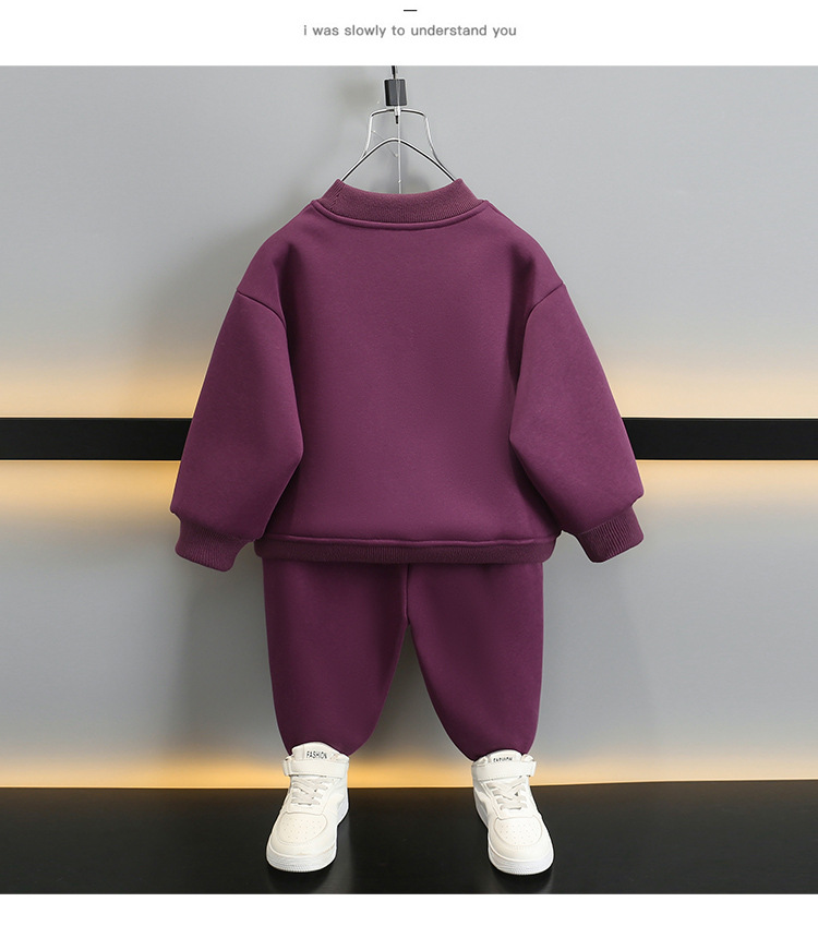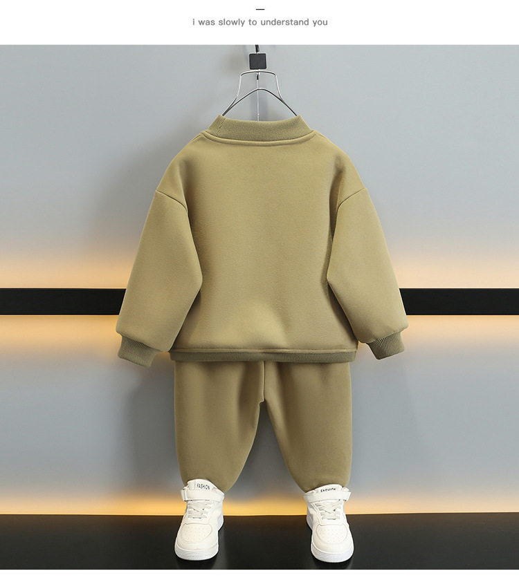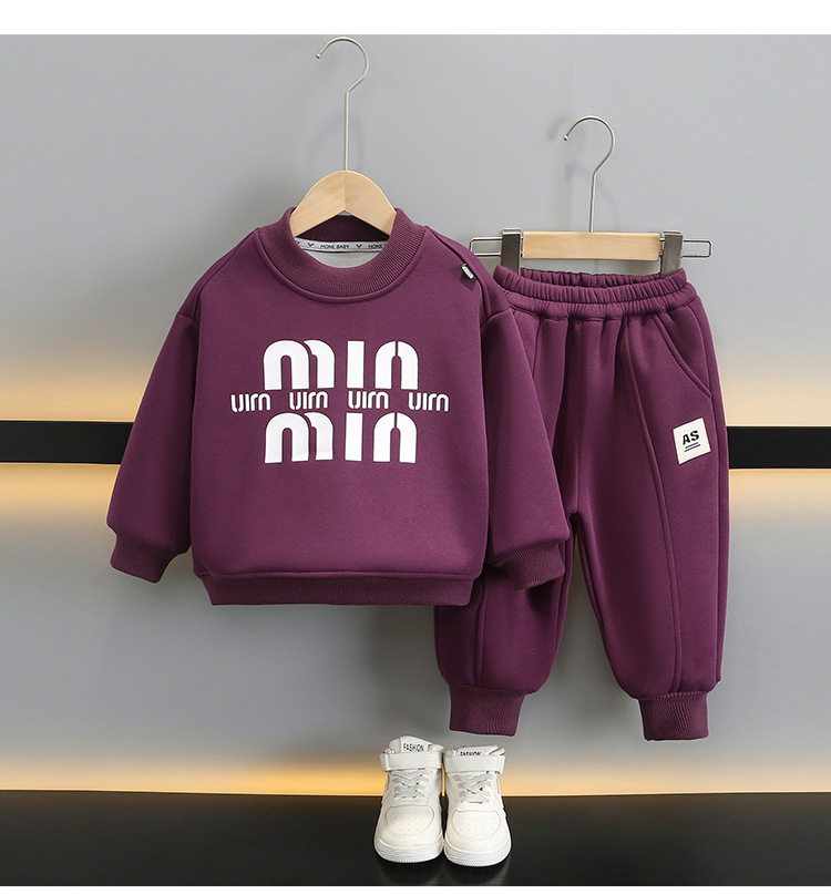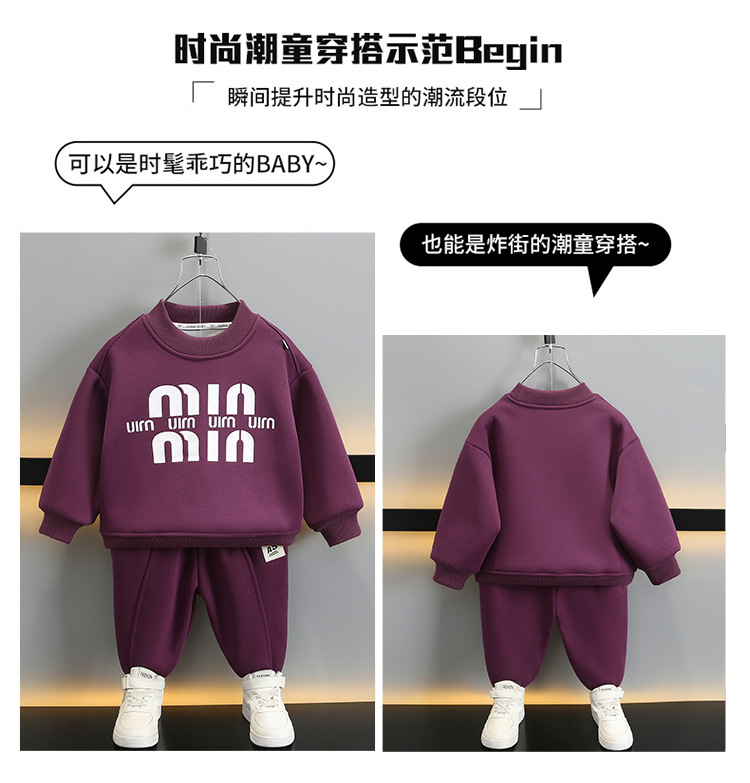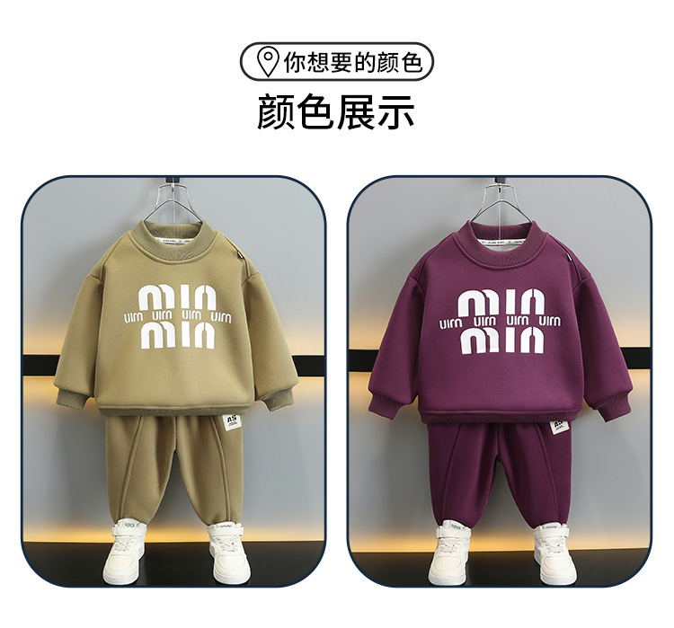 6743 Traje de suéter para niños más terciopelo engrosamiento ropa de invierno para niños 2025 otoño e invierno nuevo traje deportivo para bebés de dos piezas