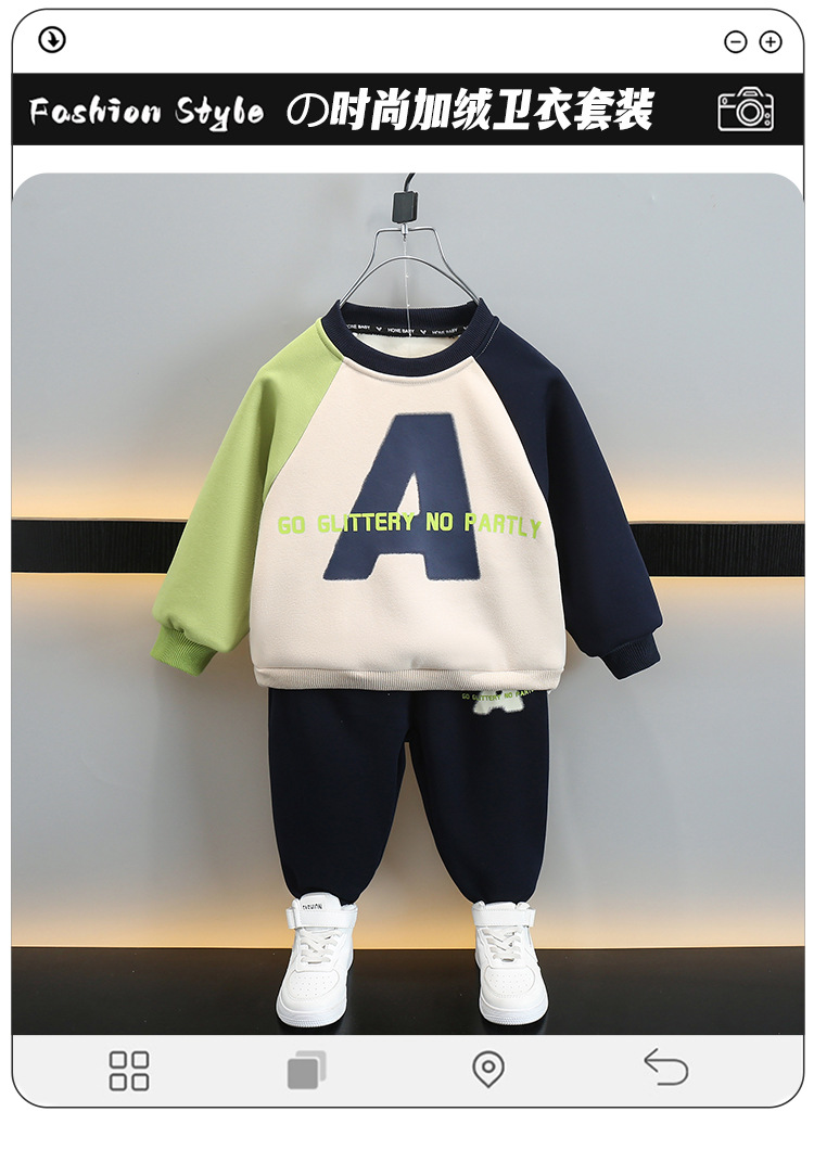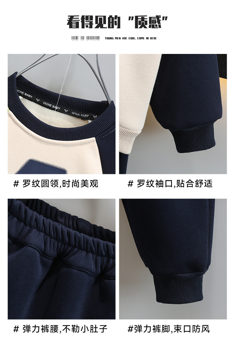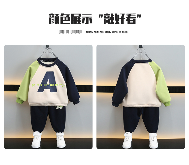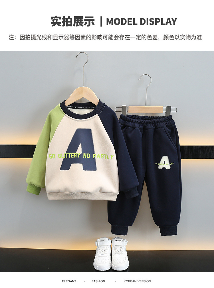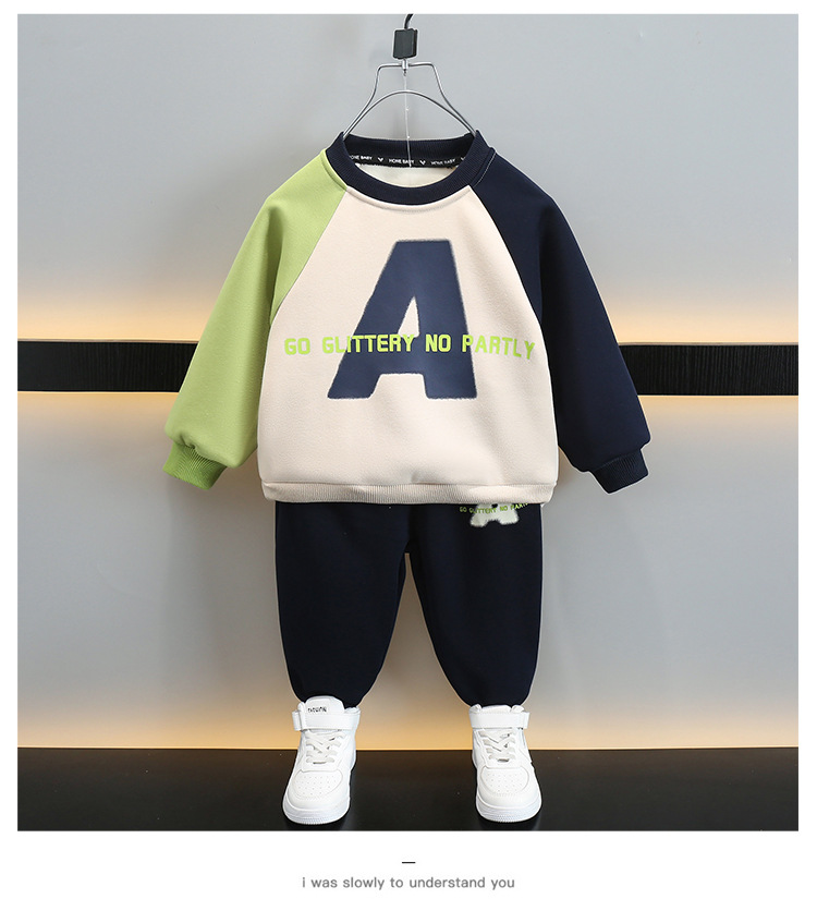 6745 Traje para niños Primavera y otoño Ropa de otoño para niños Estilo occidental Suéter de otoño e invierno para niños Conjunto de dos piezas más terciopelo para bebés Invierno