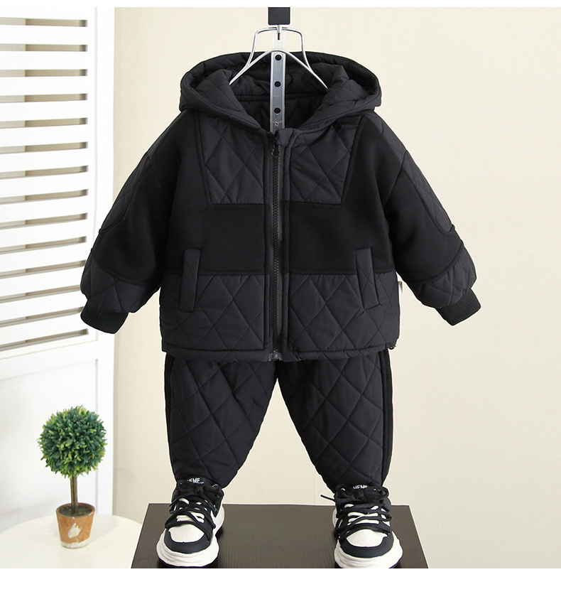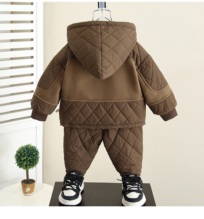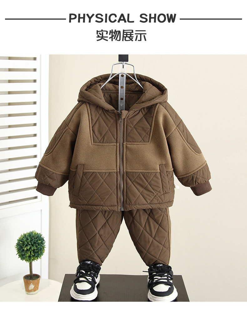 6687 Traje de invierno para niños 2025 nuevo estilo estilo estilo occidental cosido chaqueta acolchada de algodón de dos piezas bebé más terciopelo