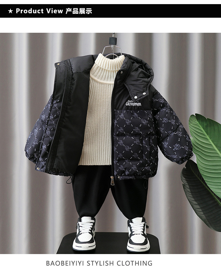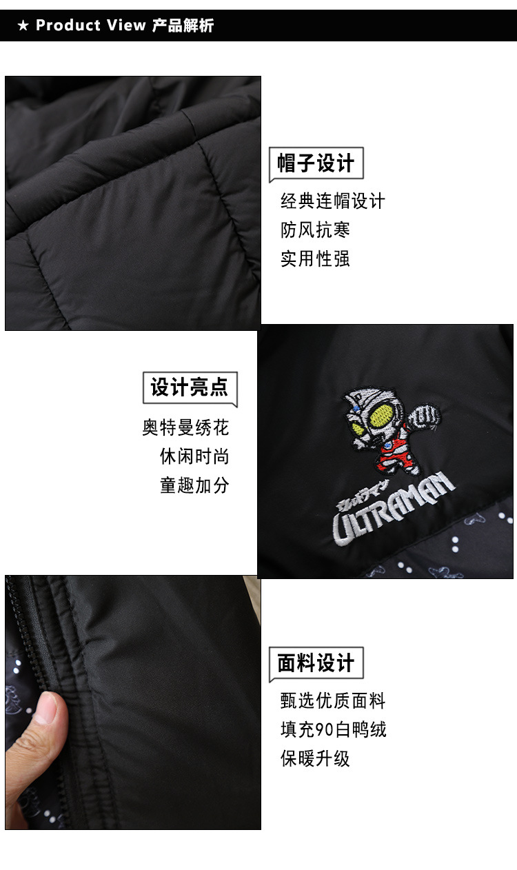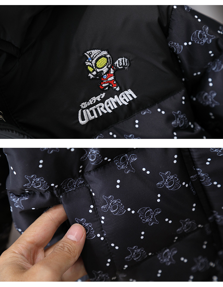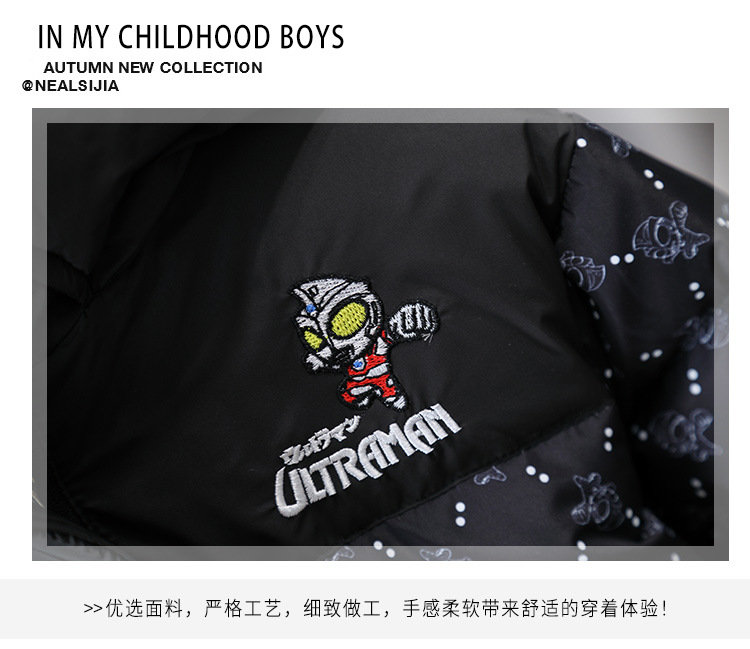 6617 Ultraman chaqueta de plumón de invierno para niños 2025 nuevo estilo para niños grueso y cálido marca de marea 90 terciopelo de pato blanco estilo de invierno