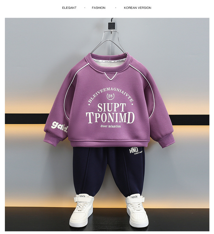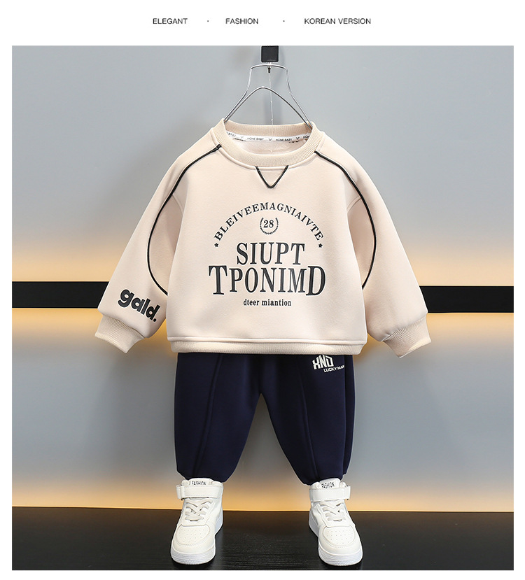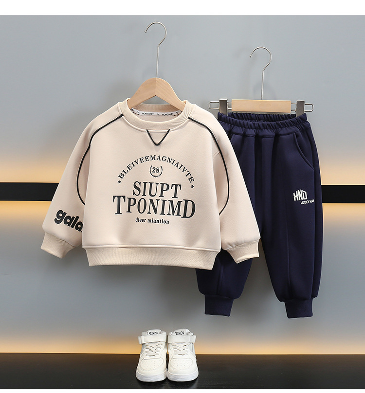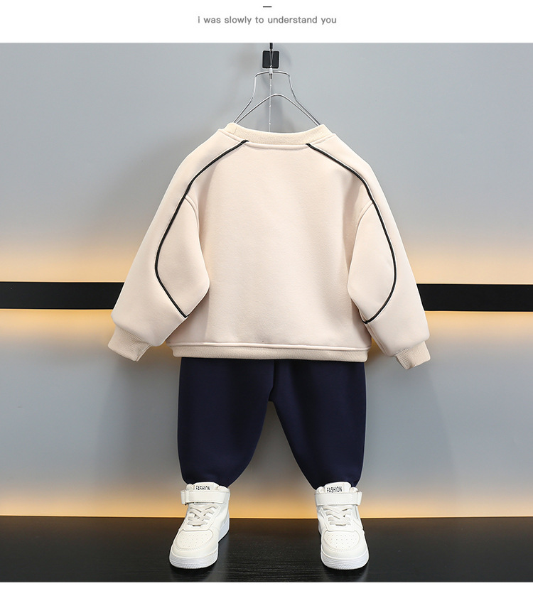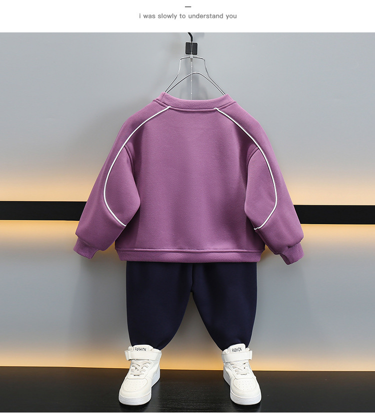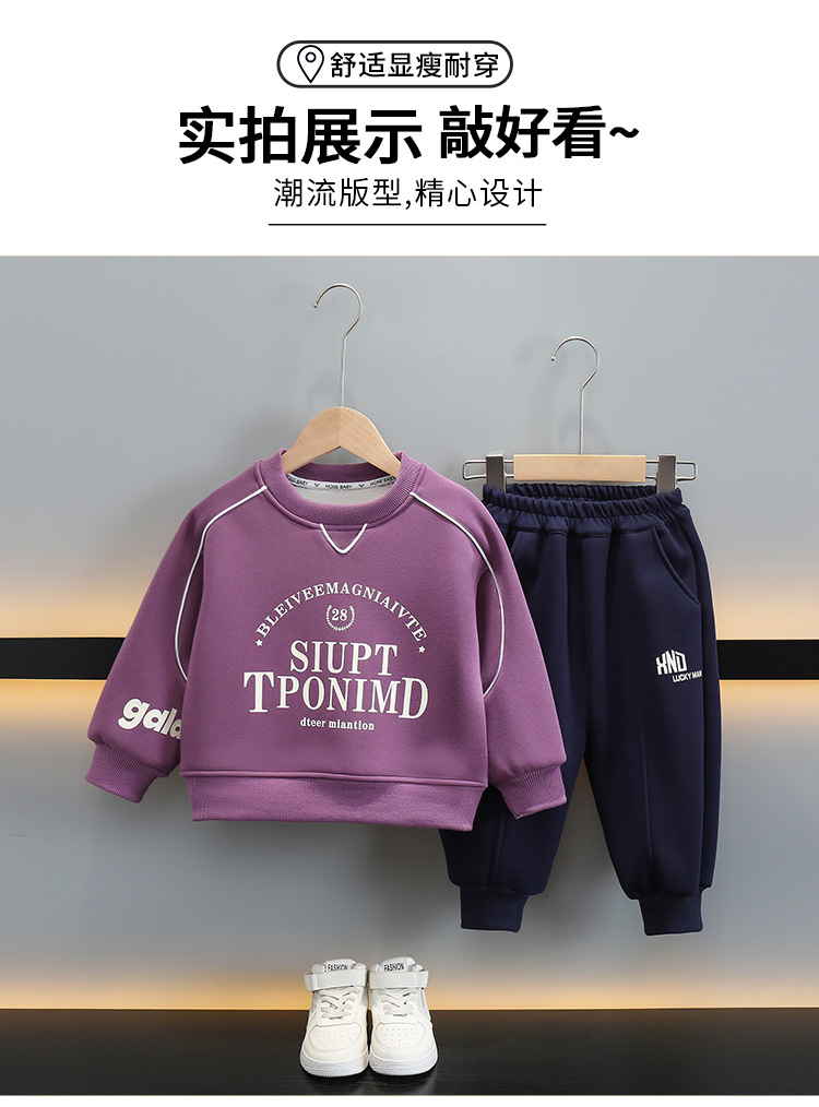 6518 traje de terciopelo para niños 2025 nuevo traje deportivo de suéter de dos piezas grueso para niños pequeños y medianos