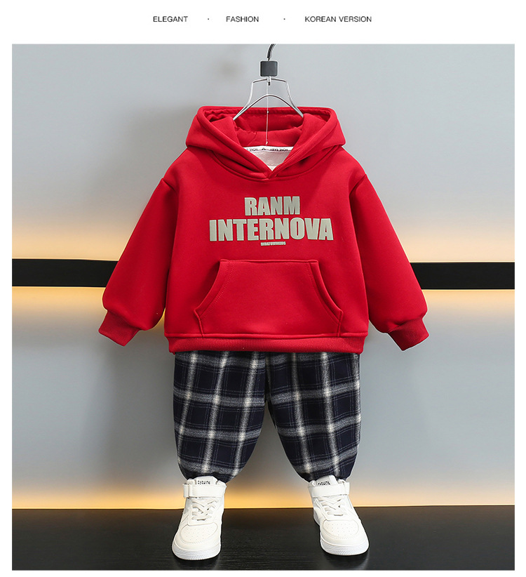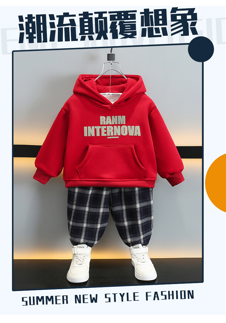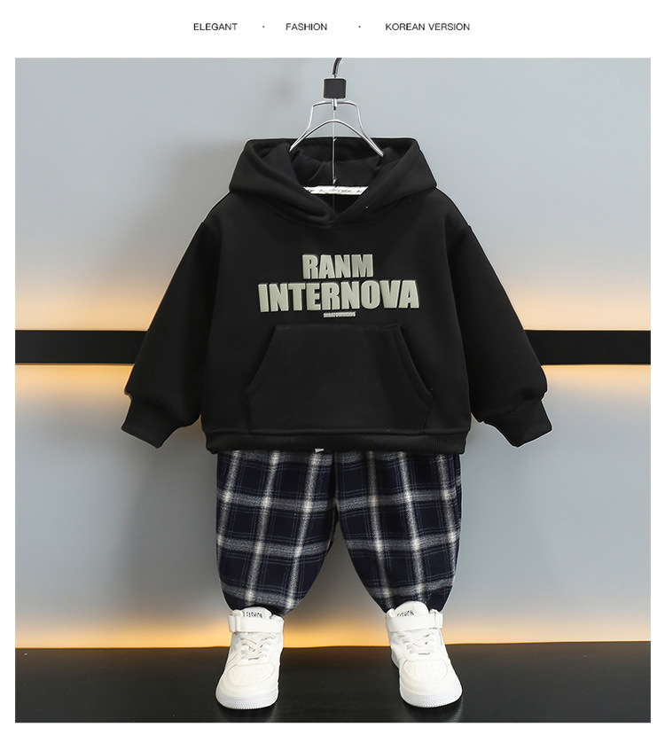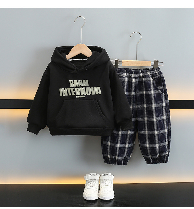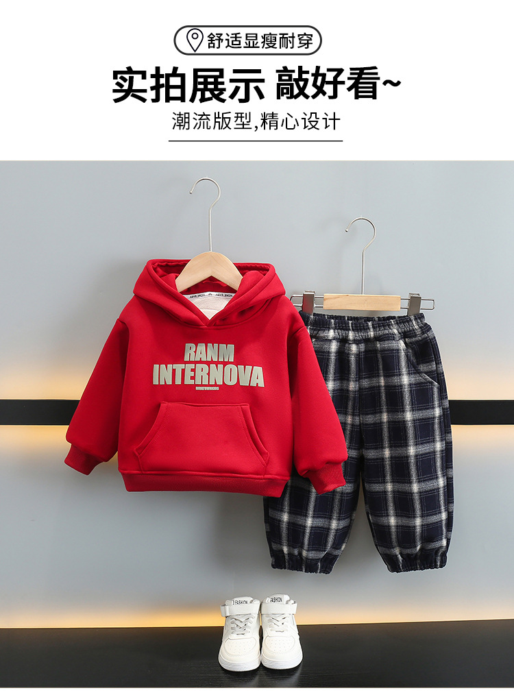 6392 ropa de otoño e invierno para niños más traje de terciopelo 2025 nueva ropa deportiva para bebés suéter grueso para niños de dos piezas