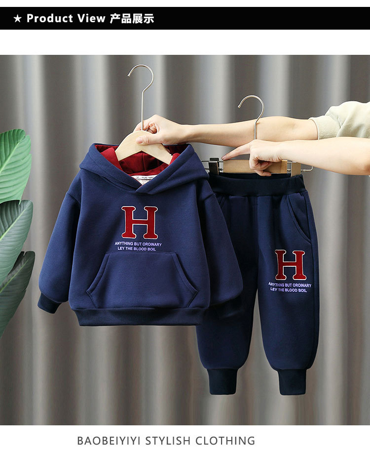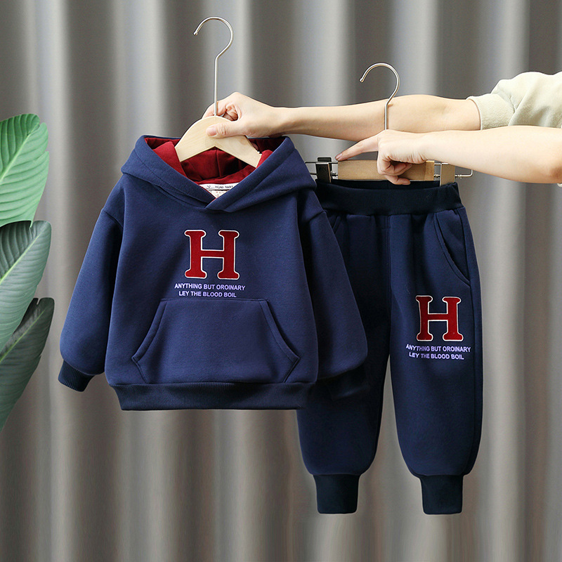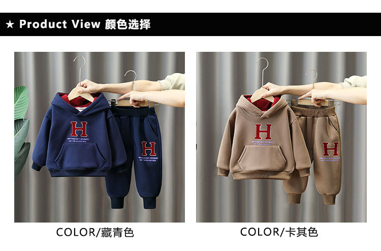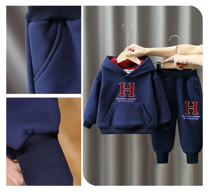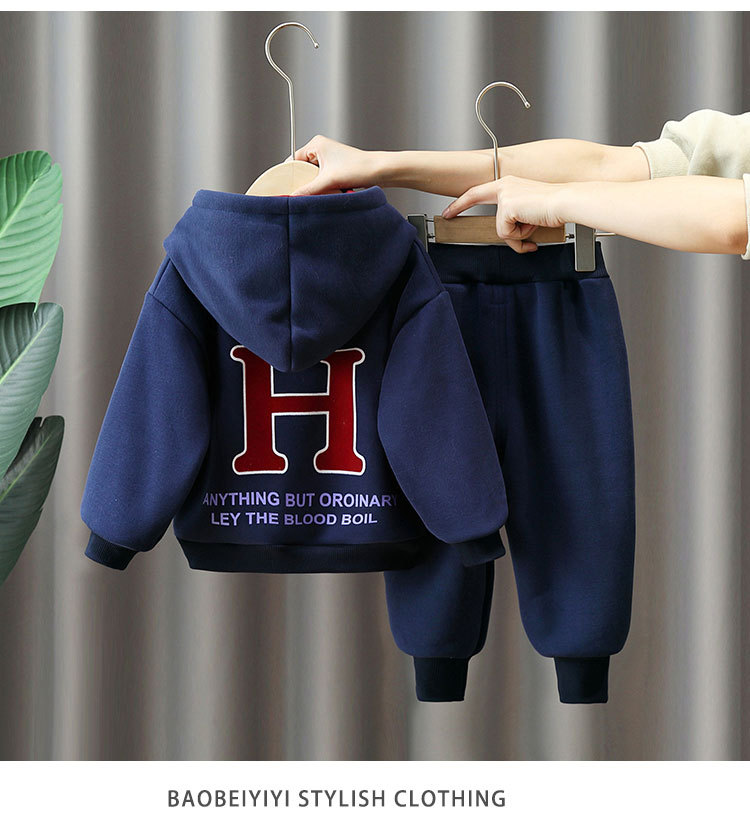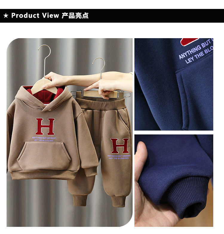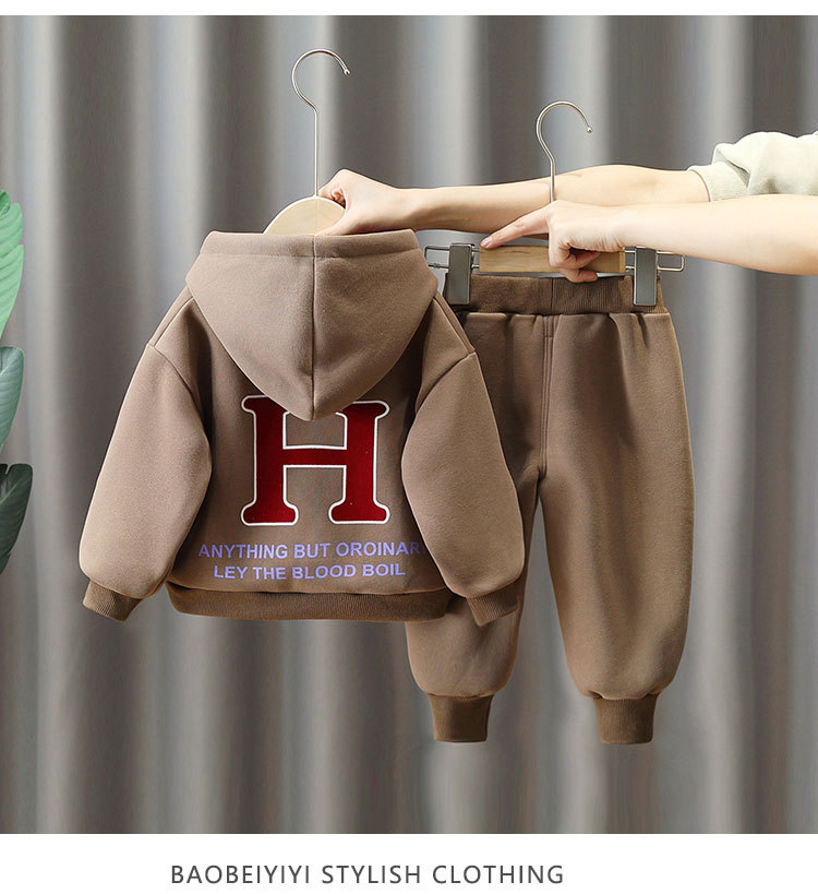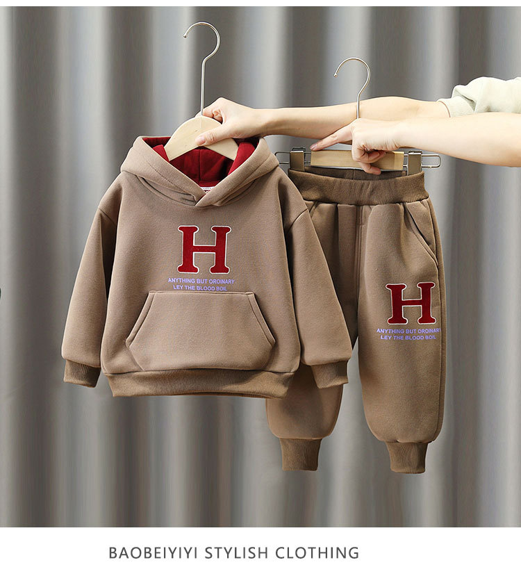 6369 traje de suéter grueso para niños 2025 otoño e invierno nuevo estilo ropa deportiva de terciopelo de una pieza para niños más traje de dos piezas de terciopelo