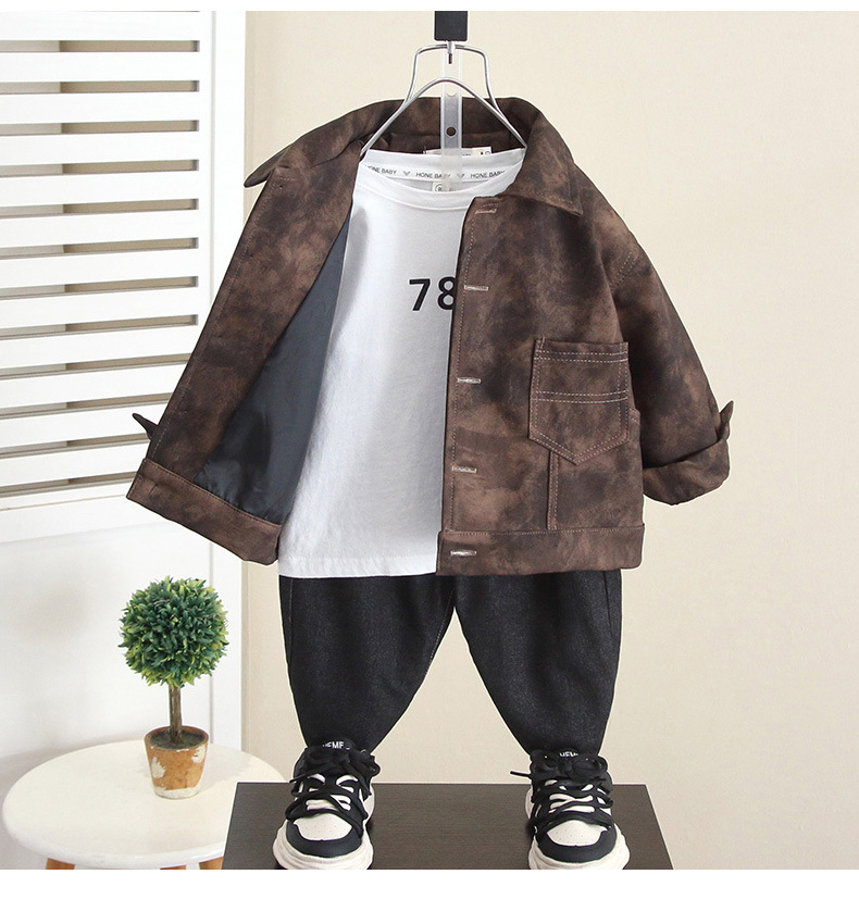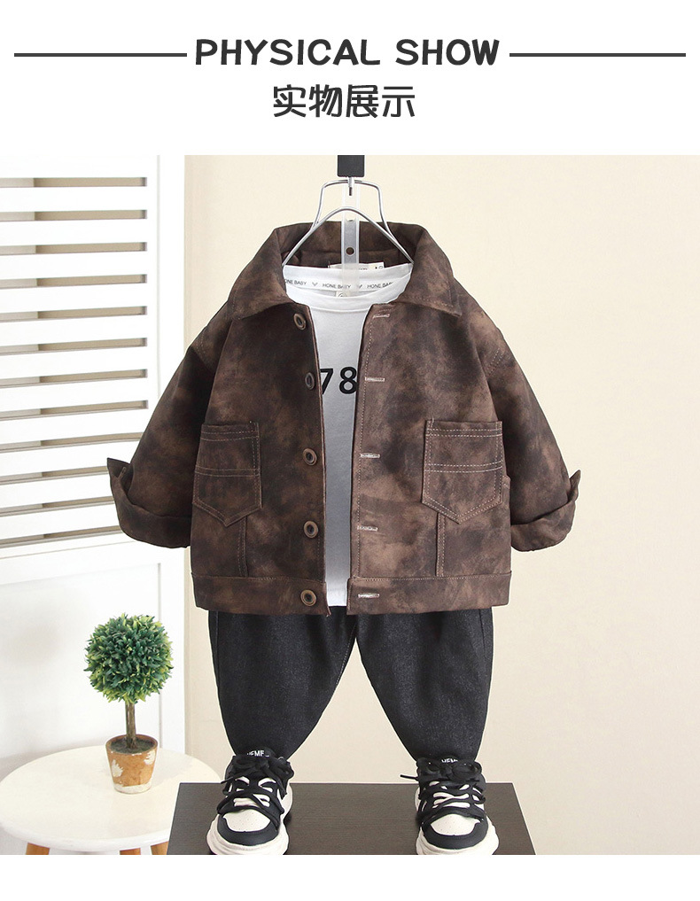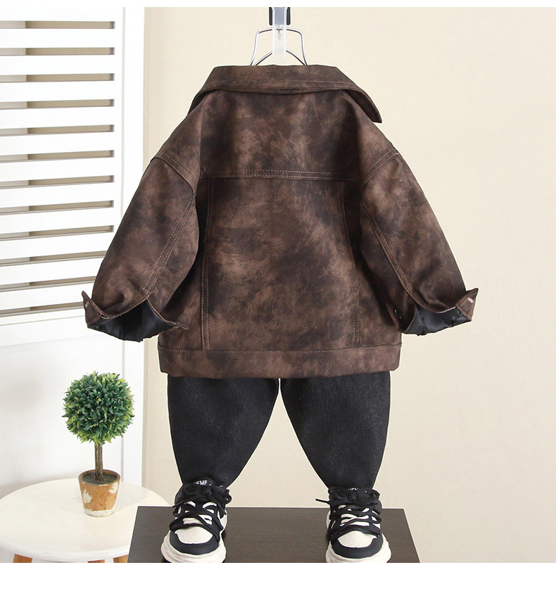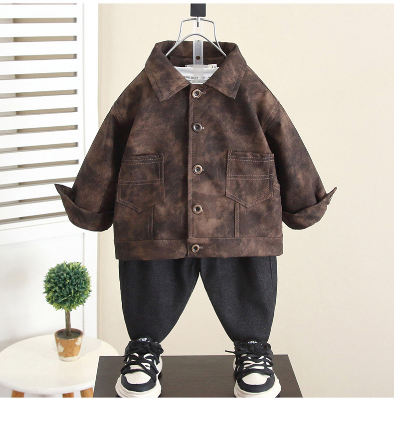 6352 Ropa de otoño para niños Chaqueta de cuero coreana Ropa para niños Chaqueta de cuero de primavera y otoño 2025 Nuevo estilo de moda para bebés Calle frita
