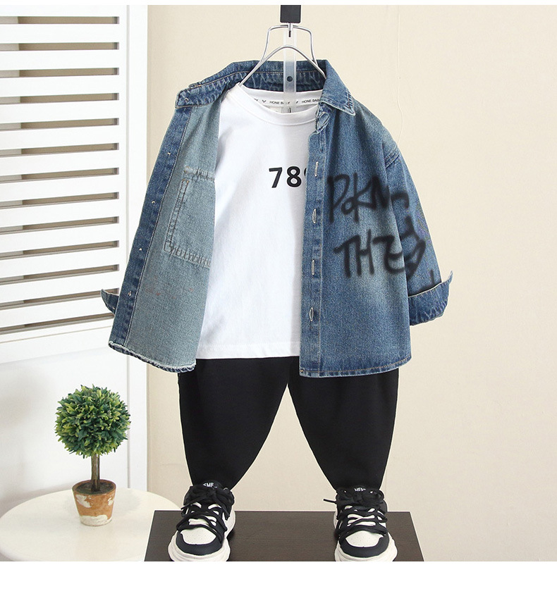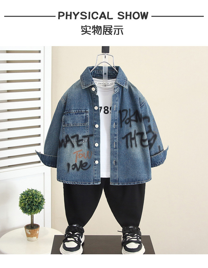 6307 Camisa de mezclilla coreana para niños Chaqueta Otoño 2025 Nuevo bebé Otoño Camisa de manga larga para niños Primavera y otoño