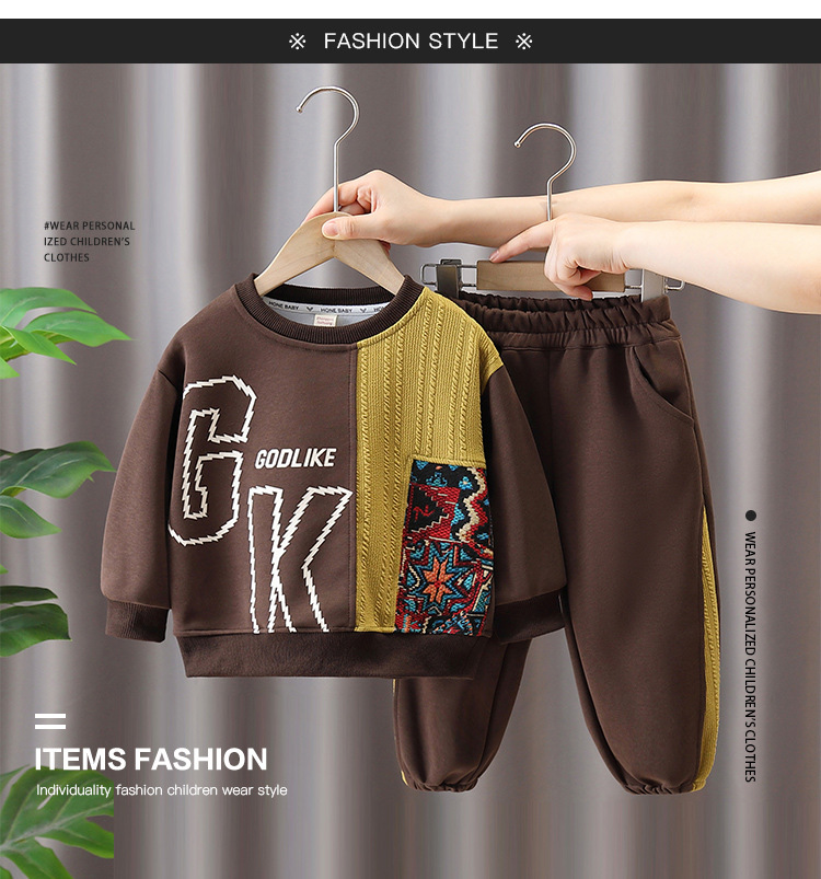 6321 Traje de otoño para niños 2025 nueva ropa de moda para niños suéter de otoño de dos piezas de primavera y otoño para bebés